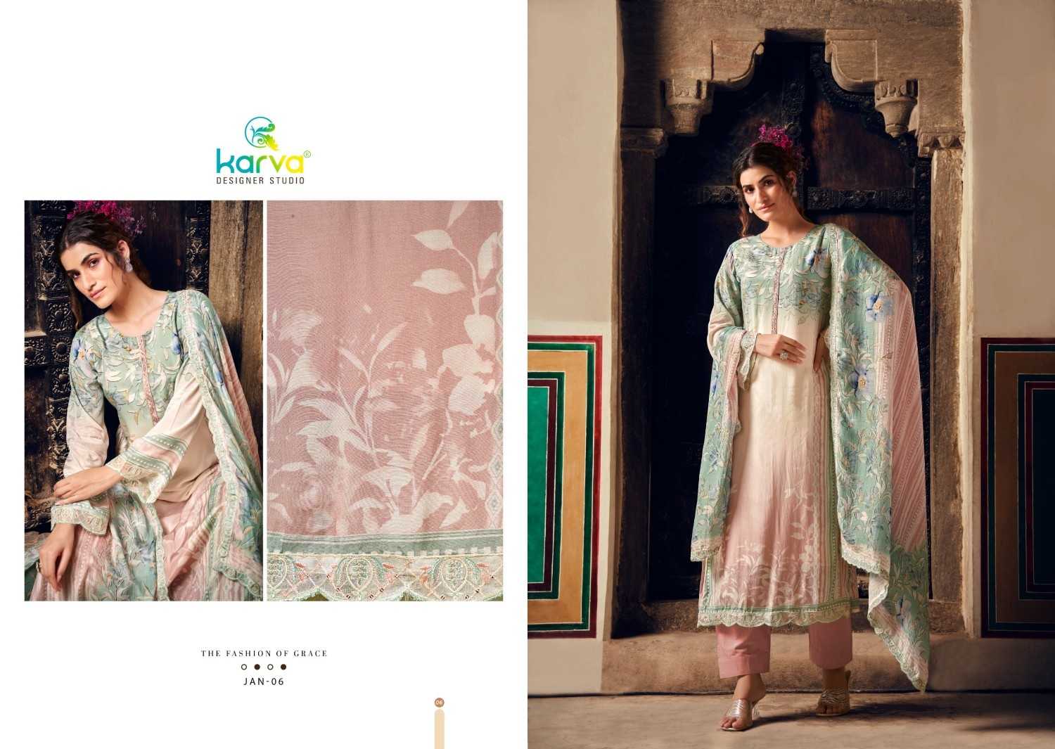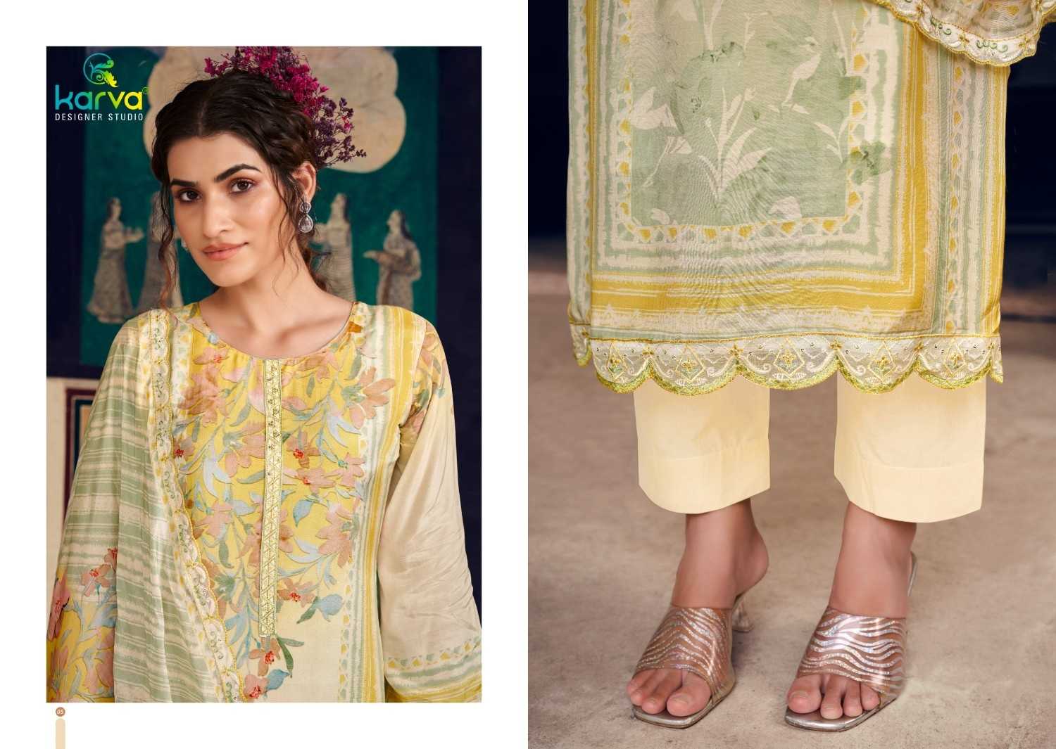Karva Designer Studio Presents Latest Collection Launched on 17-10-2024. Presenting Beautiful collection of 6 PCS with Unstitched .