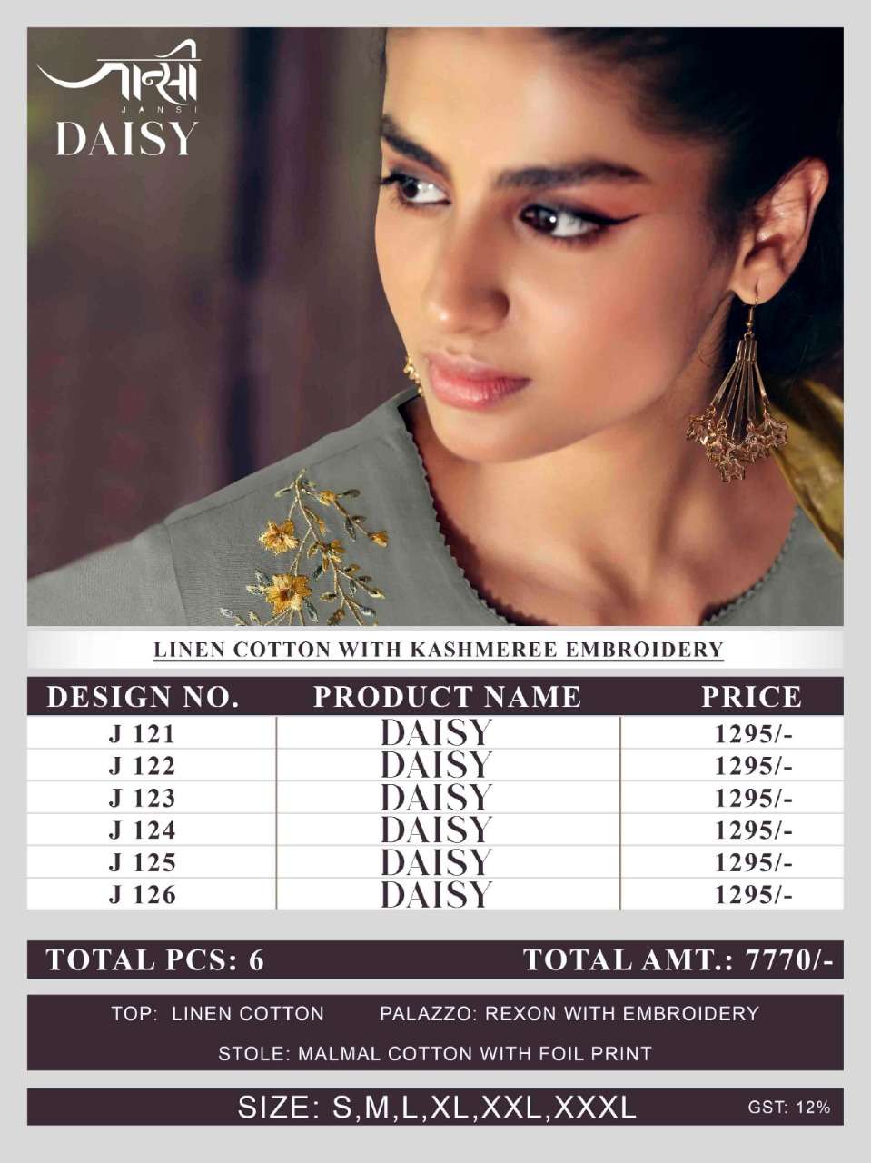 By Omtex Jansi Launches its NEW Ready to wear collection "Daisy" FABRIC! KURTI - Linen Cotton. EACH DESIGN IS ENRICHED WITH EMBROIDERIES. PALLAZZOS - Rexon with Embroidery DUPPATA: Malmal with Foil print... RATE - Rs 1295/- Total STYLES 6 Booking started |