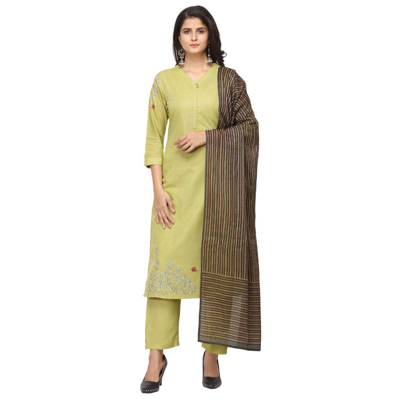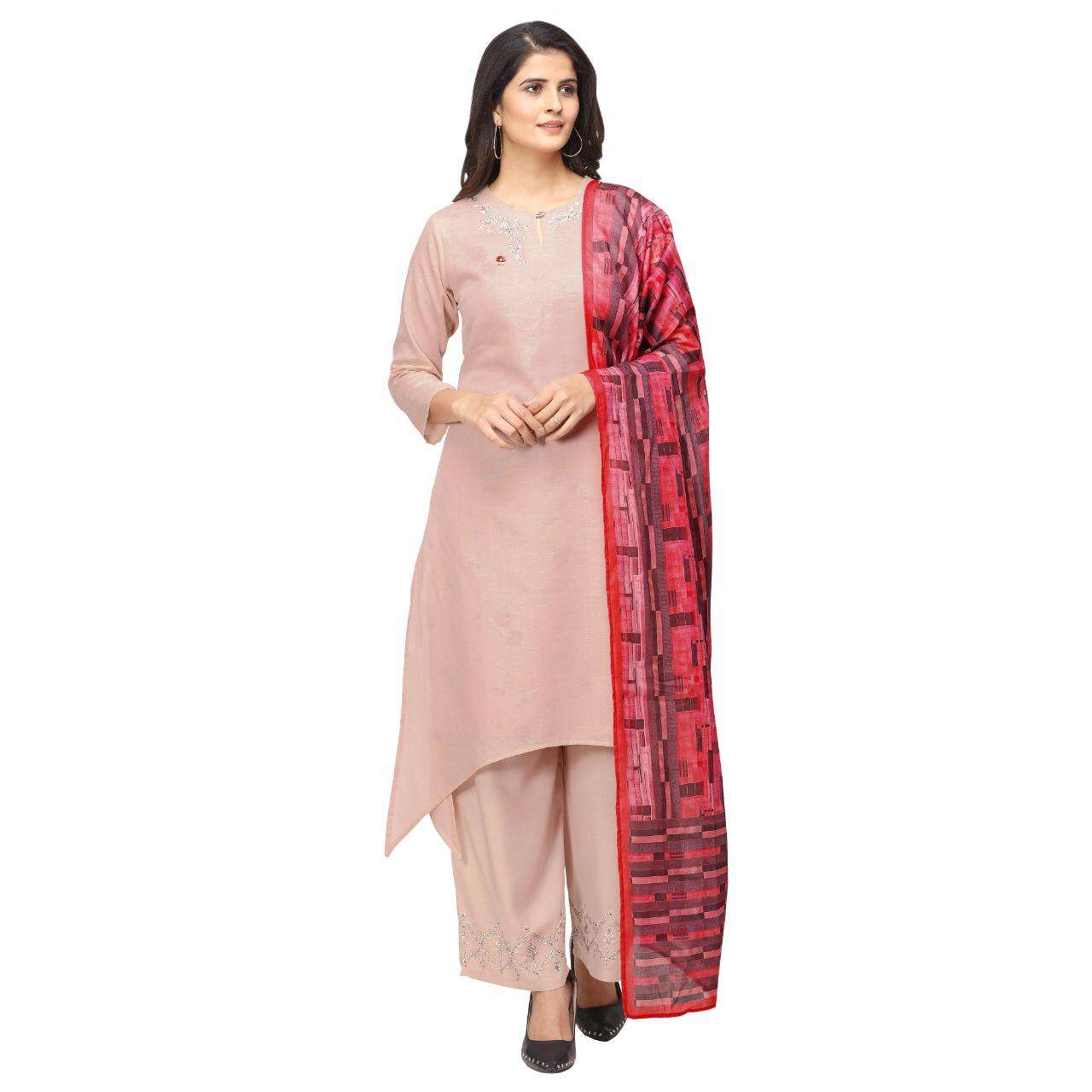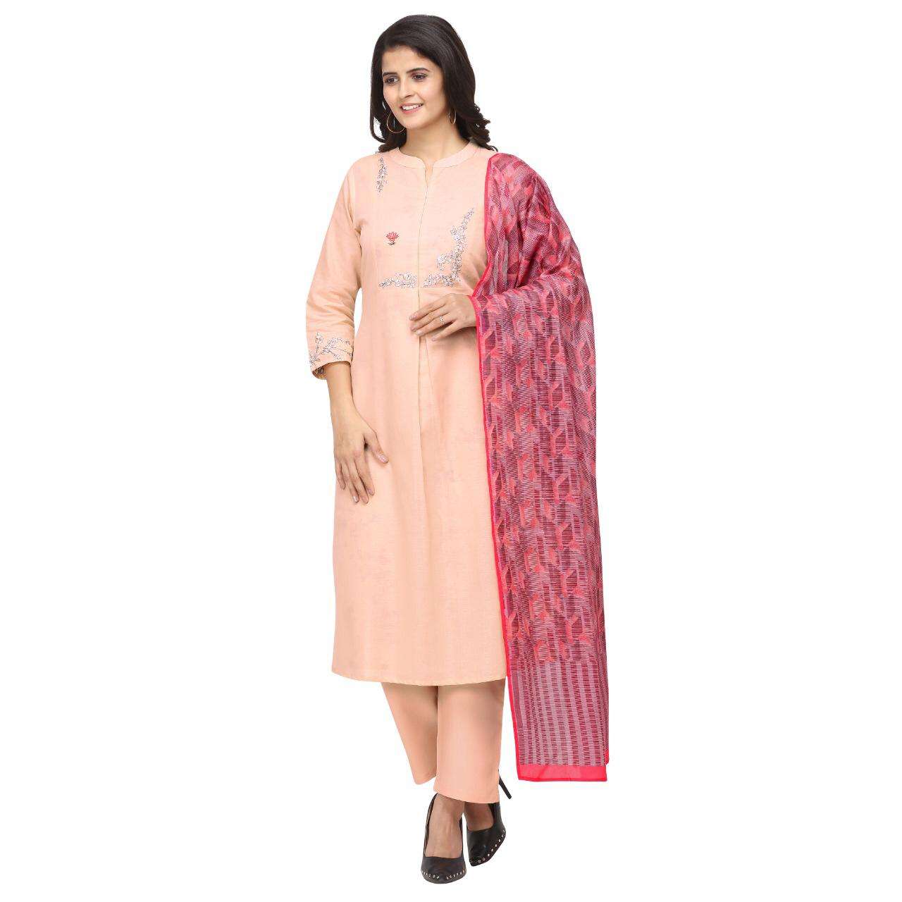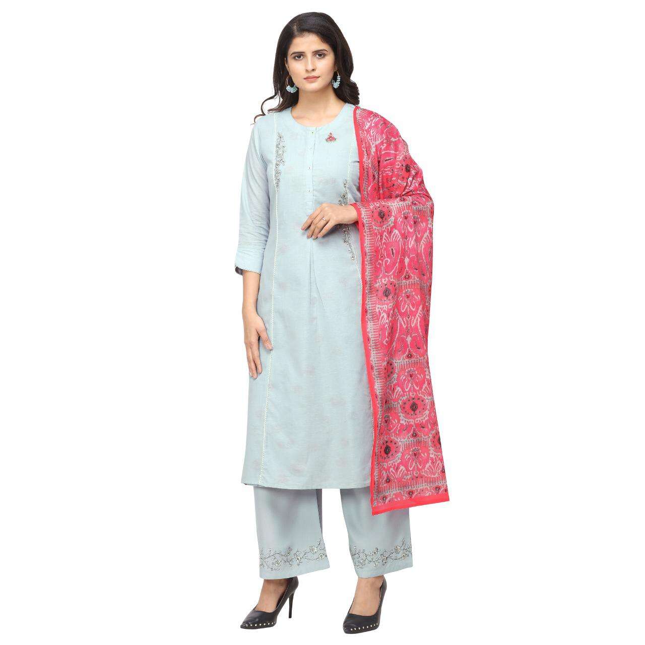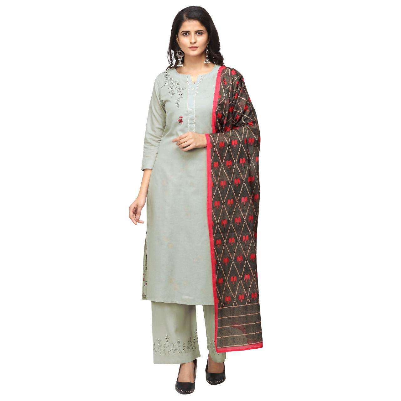 FABRIC! TOP - Linen Cotton. EACH DESIGN IS ENRICHED WITH EMBROIDERIES. INNER PRINTED MALMAL COTTON PALLAZZOS - Flaxon with embroidered DUPPATA: Digital print Malmal Cotton RATE - Rs 1395/- Total STYLES 8 |