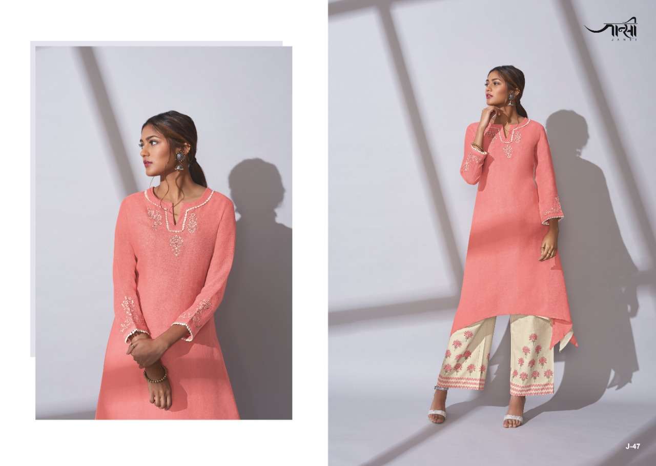 jansi shadow by omtex cotton designer long kurti with plazzo pant collection