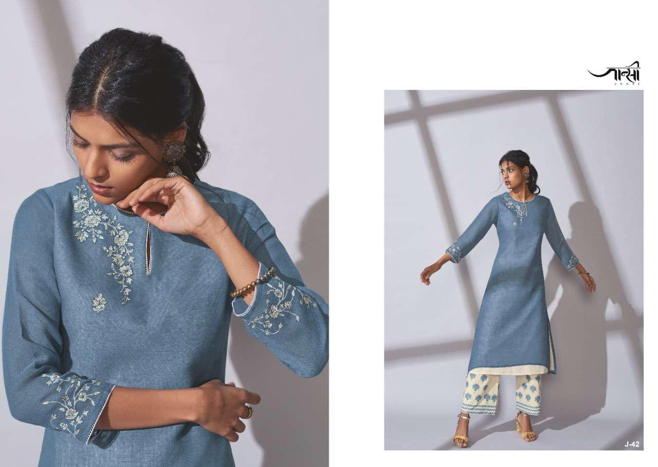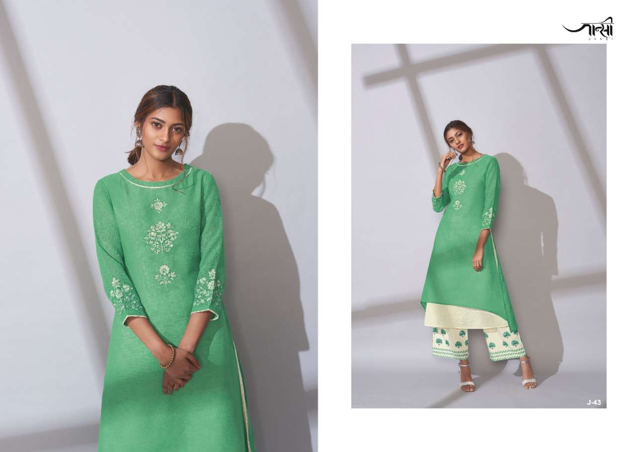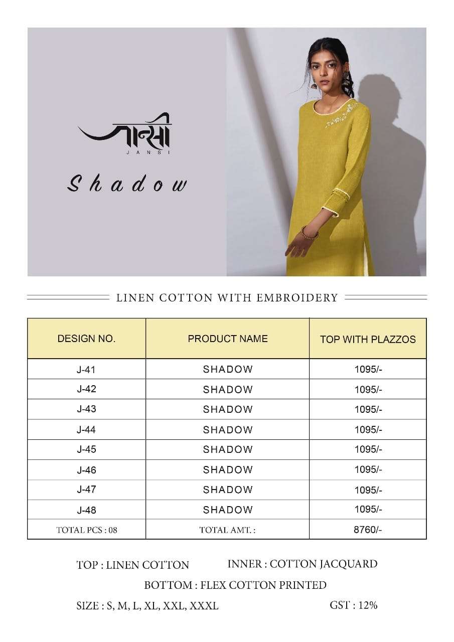 By Omtex Jansi Launches its NEW Ready to wear collections "Shadow" FABRIC! KURTI - Upper Layer Linen Cotton. EACH DESIGN IS ENRICHED WITH EMBROIDERIES. Inner layer white Jacqaurd Cotton PALLAZZOS - Handloom Cotton with Ankle print