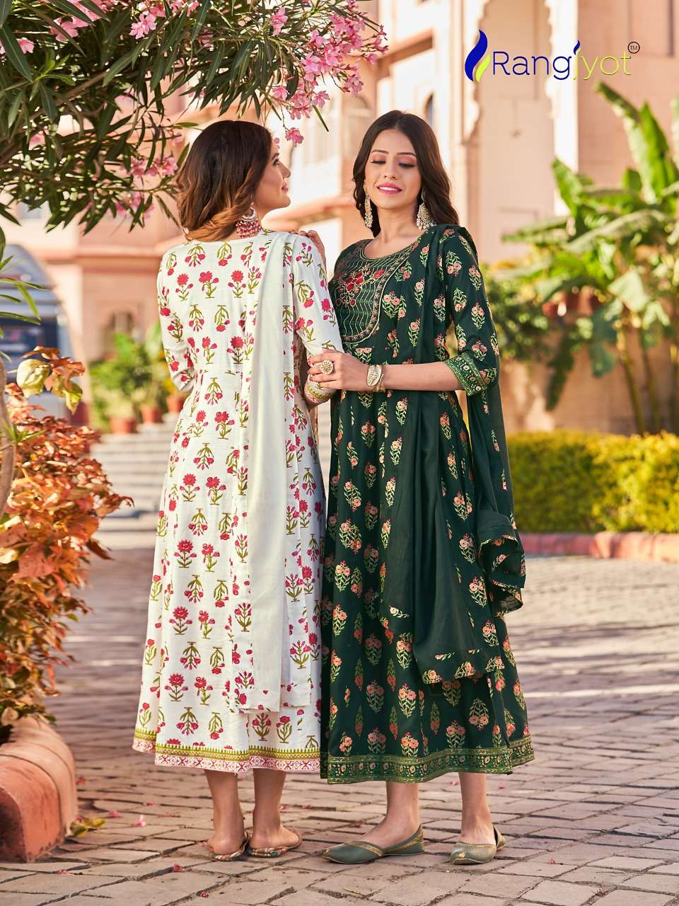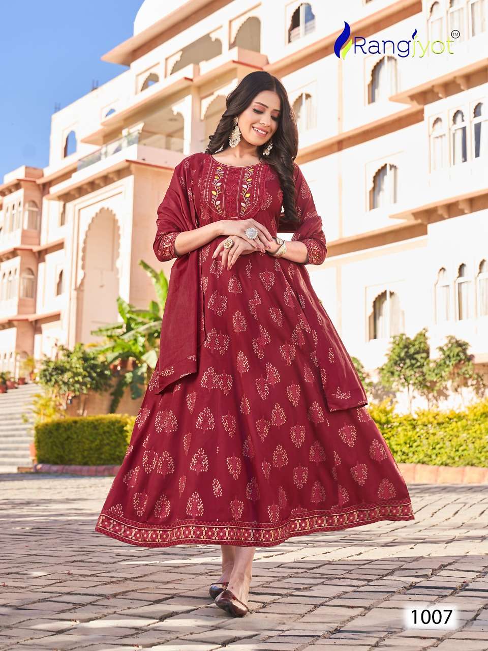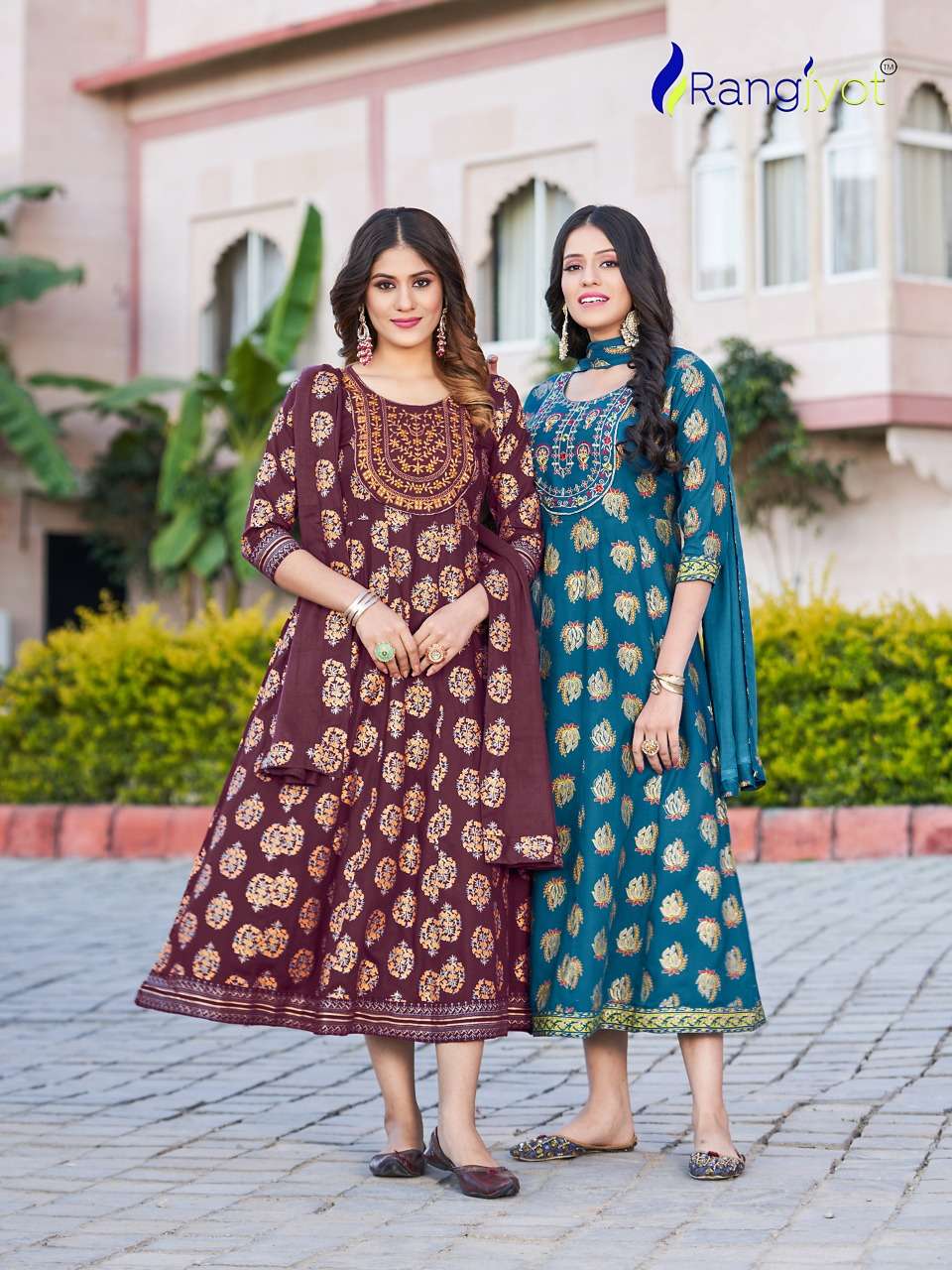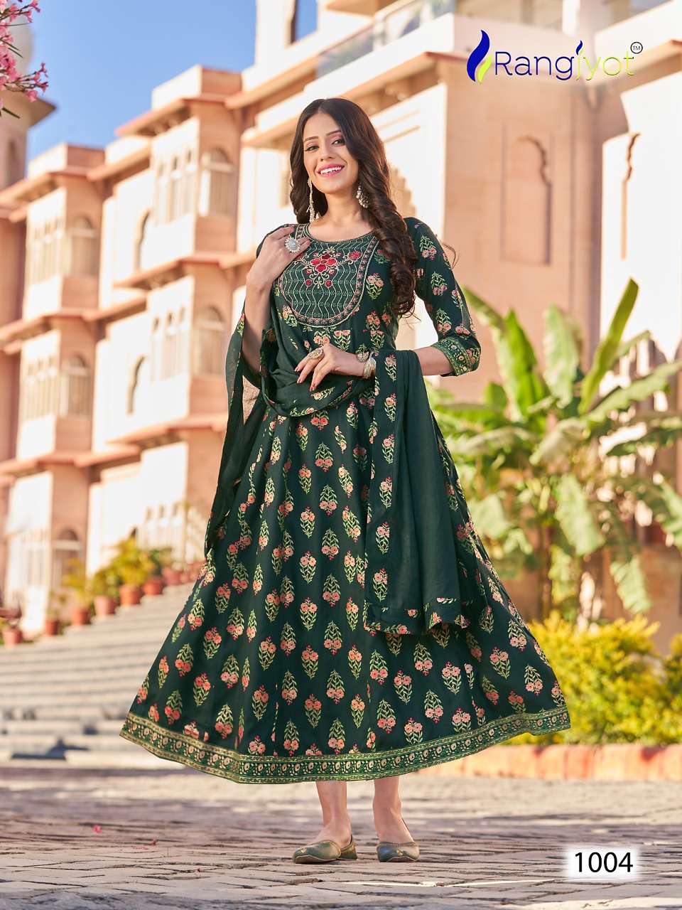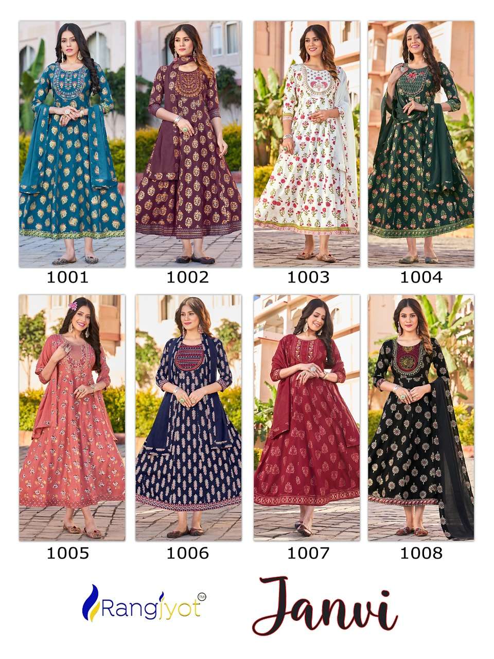 janvi vol 1 by rangjyot rayon long big sizes gown with dupatta pair