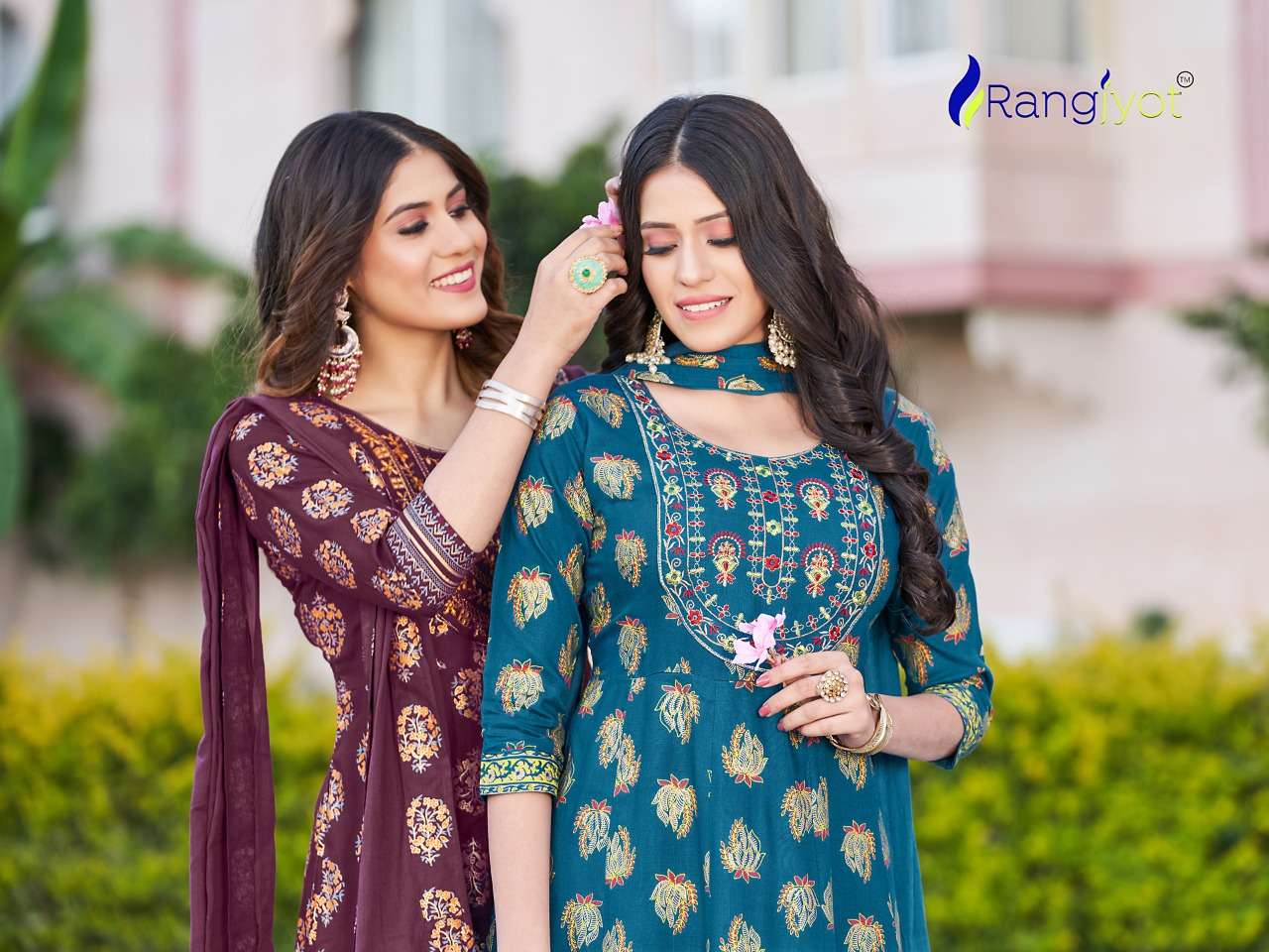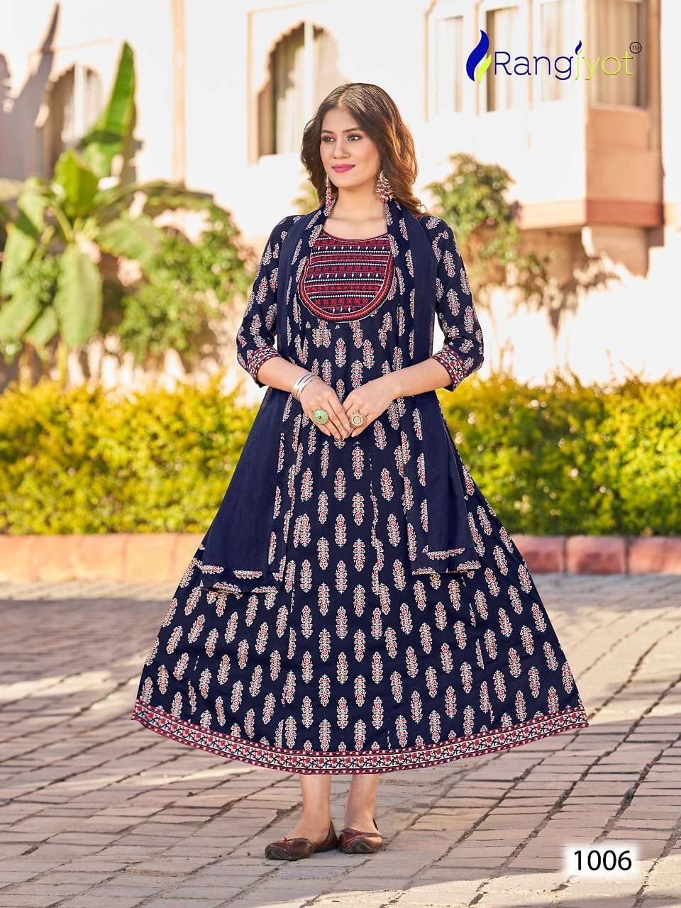 Rangjyot 🎗 Bring out your inner princess as we're launching "JANVI" - A collection of Anarkali gowns in the most colorful prints of the season! Introducing " Janvi Vol-1 " from RANGJYOT 🛡 Designs - 8 Pcs 👗Fabric - Rayon Slub With Embroidery Work With Zari 🪡 🧣 Dupatta - Stall Duppata Cotton Mal With 4 Side Print Patti 📍 Size - L, 3XL, 4XL, 5XL, 6XL 🪙 Rate - L - 699 🚚 Dispatch_2/3_Days |