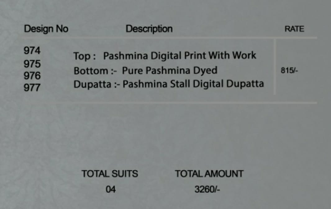 Jasmin Vol 1 By Bipson Pashmina Digital Print Exclusive Salwar Suit Wholesaler