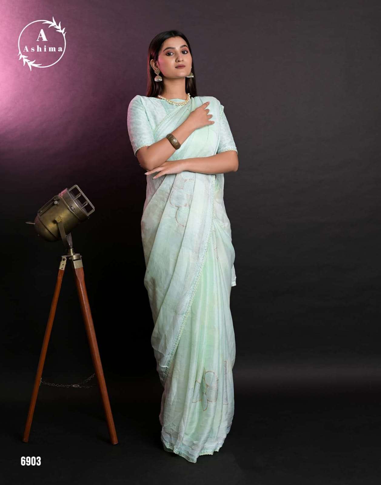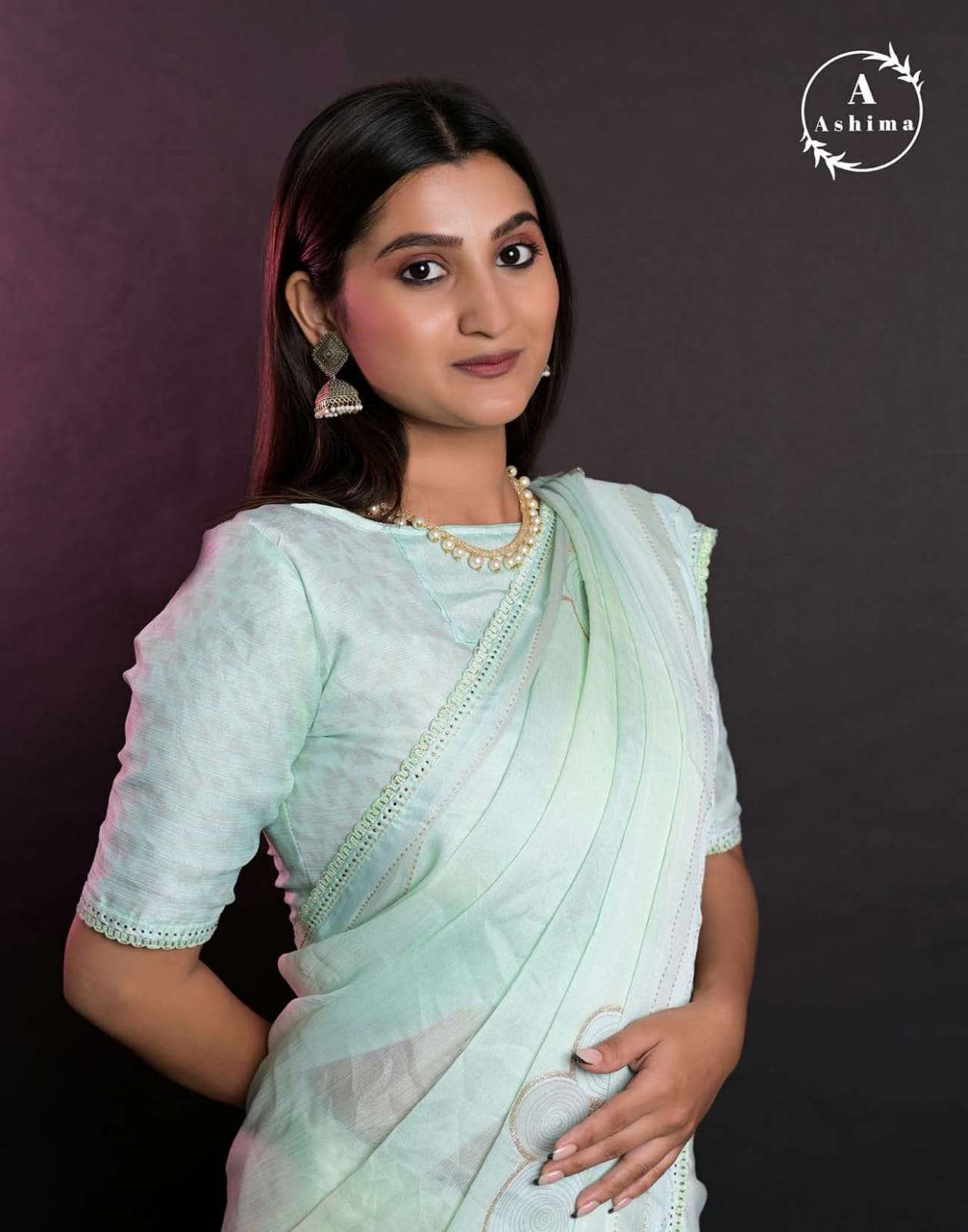 jasmine by ashima unstitched moss chiffon zari printed sarees