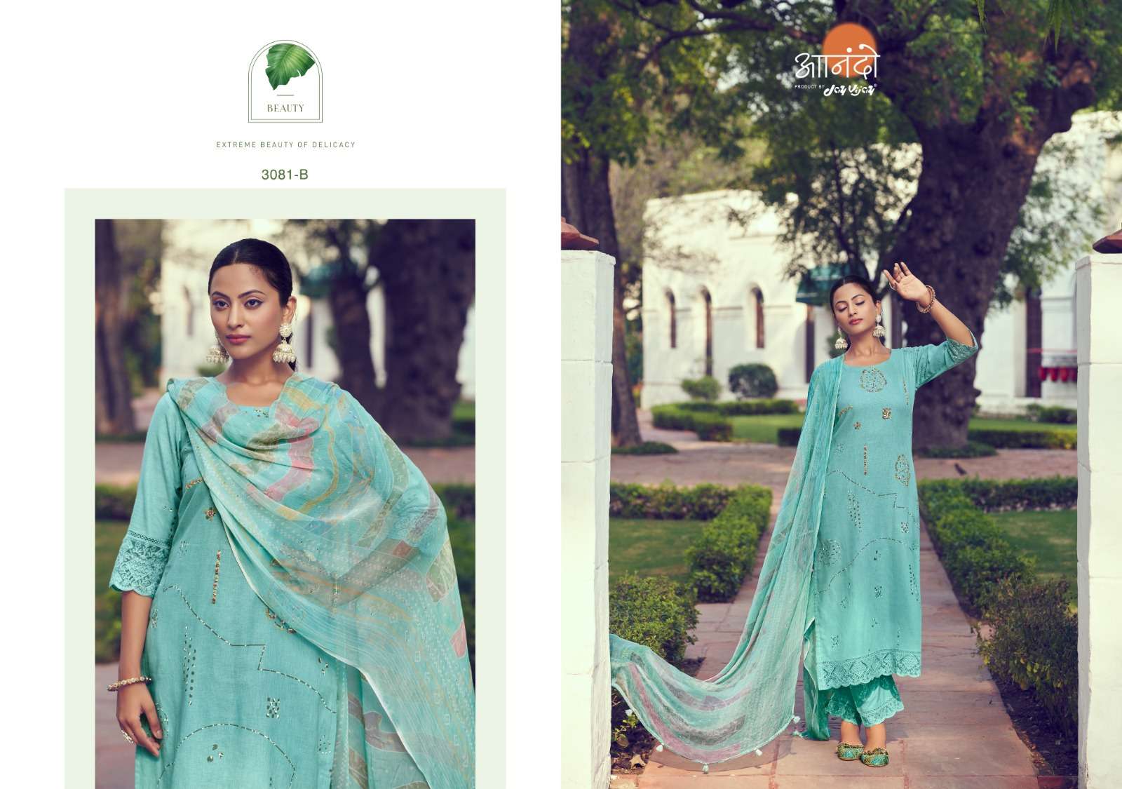 jay vijay anando lenora 3081 hand block print with handwork salwar kameez collection