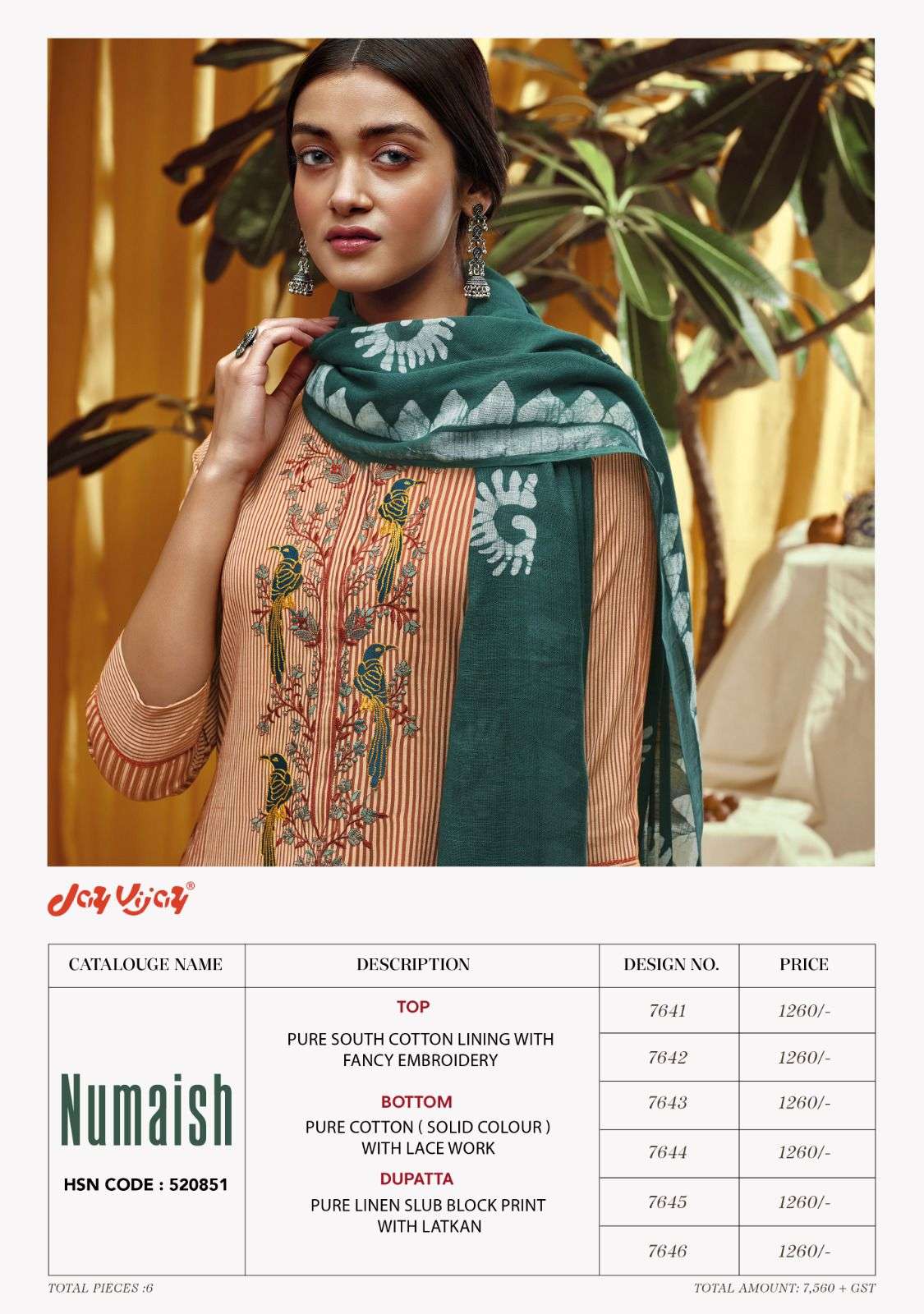 Jay Vijay Presents Latest Collection Launched on 21-07-2023. Presenting Beautiful collection of 6 PCS with Unstitched .