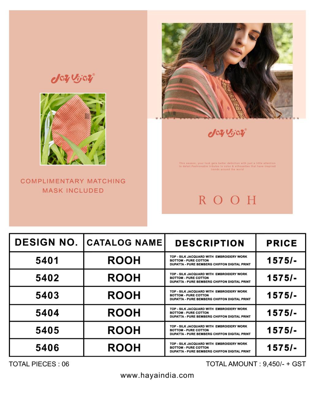 Jay Vijay Rooh Silk Jacquard With Embroidery 5401-5406 Series Salwar Suit Supplier In Surat