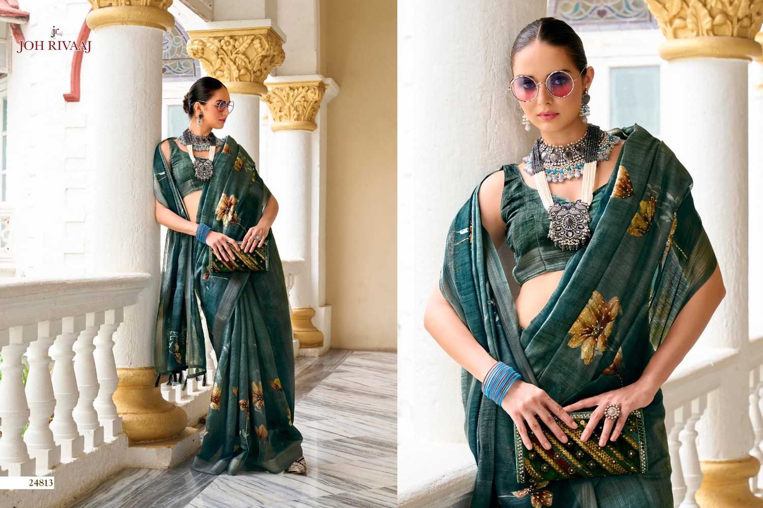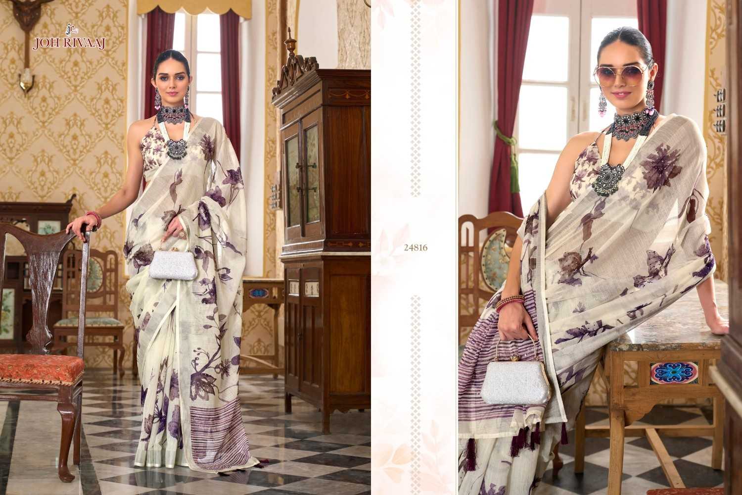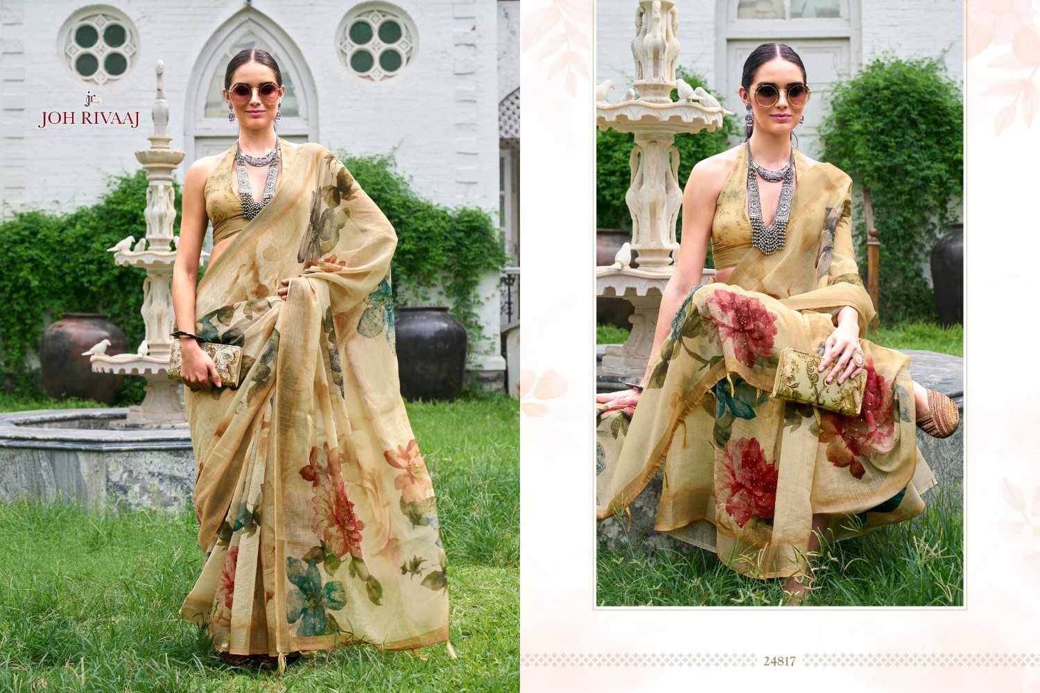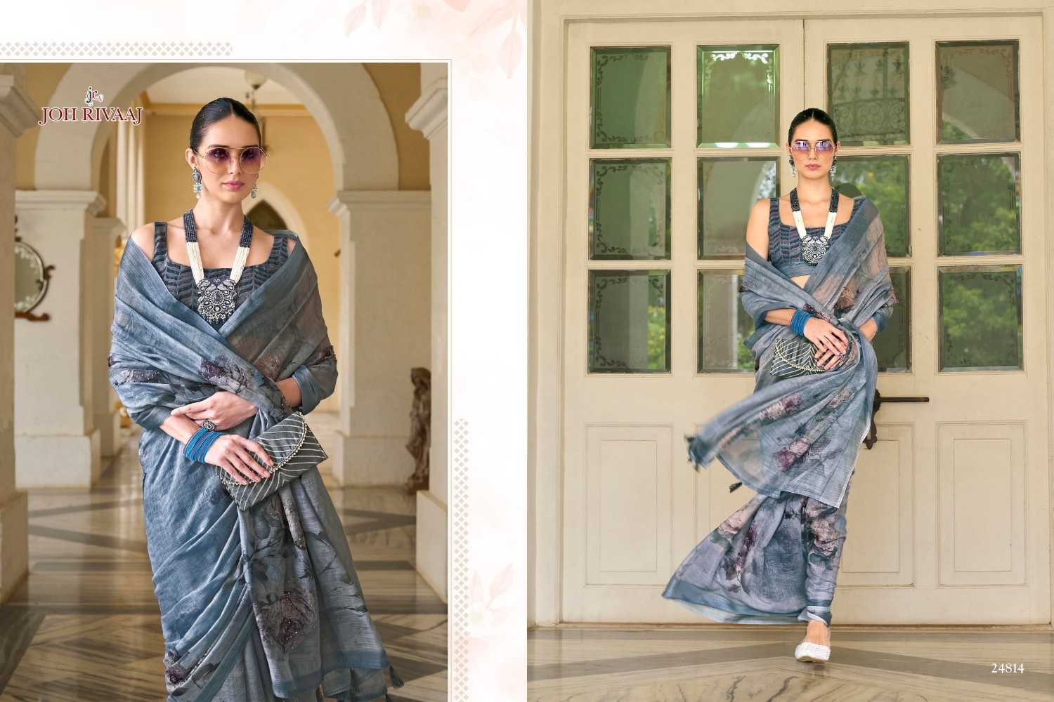 jaymee by joh rivaaj linen khatha work new trendy saree exports