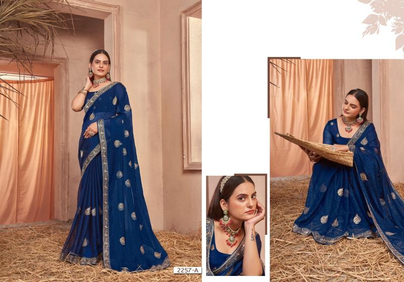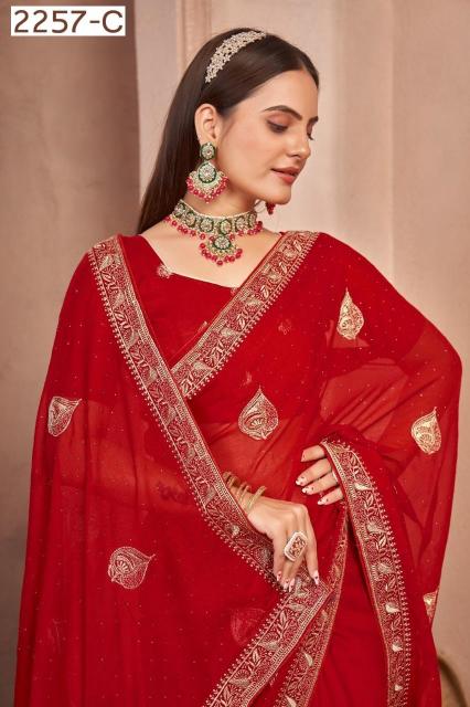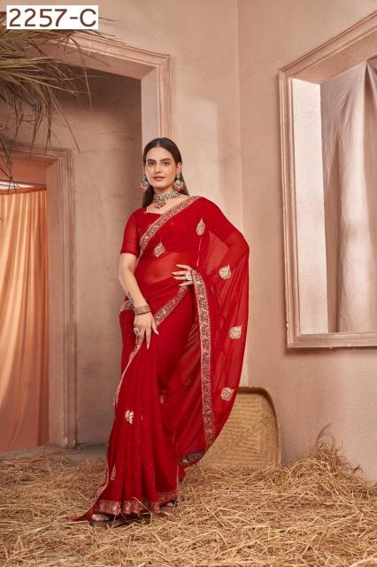 Catalog Name - 2257 Series Series :- 2257A to 2257C Rate : 1120/- +5%GST Fabric: Chiffon With Work Blouse: Running Occasion: Party Wear, Festival Wear |