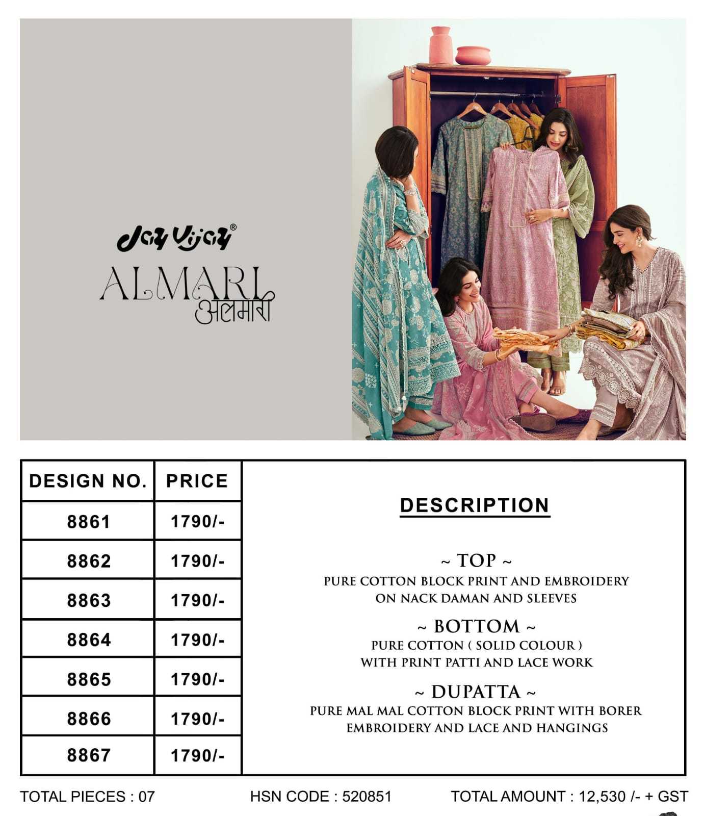 Jay Vijay Presents Latest Collection Launched on 18-03-2024. Presenting Beautiful collection of 7 PCS with Unstitched .