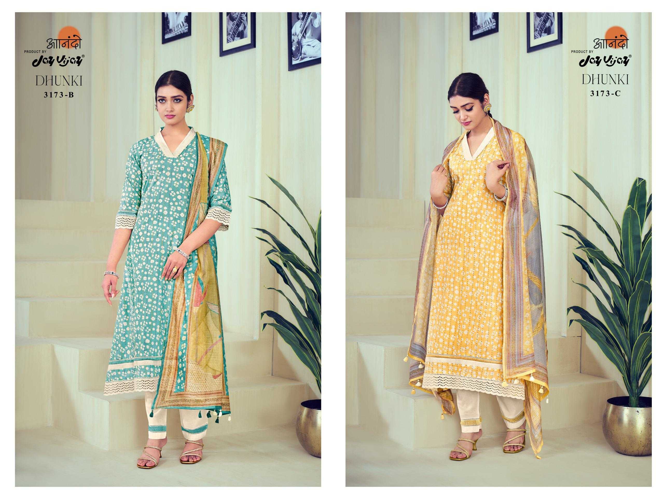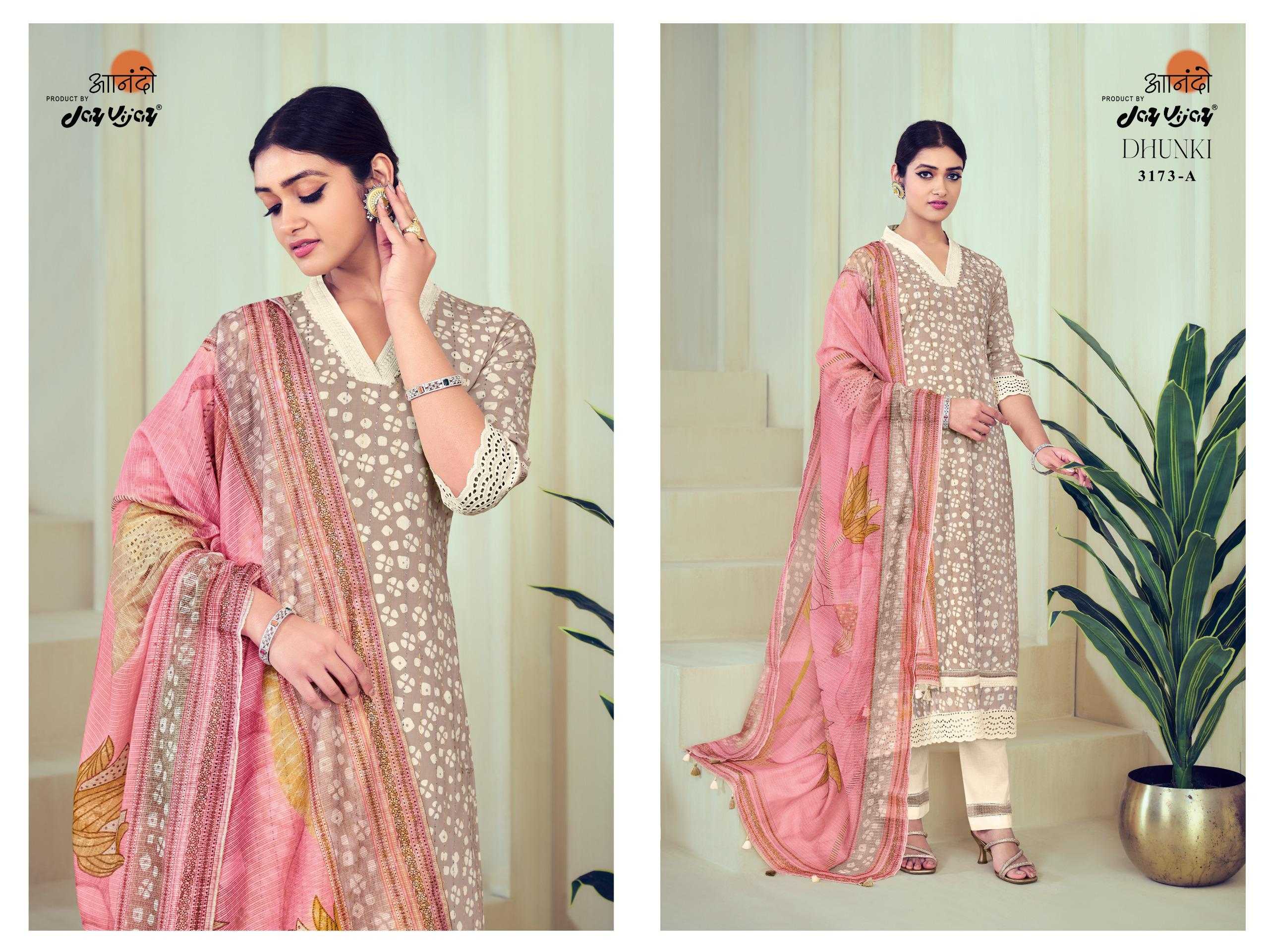 jayvijay anando dhunki 3173 elegant katha work dress material