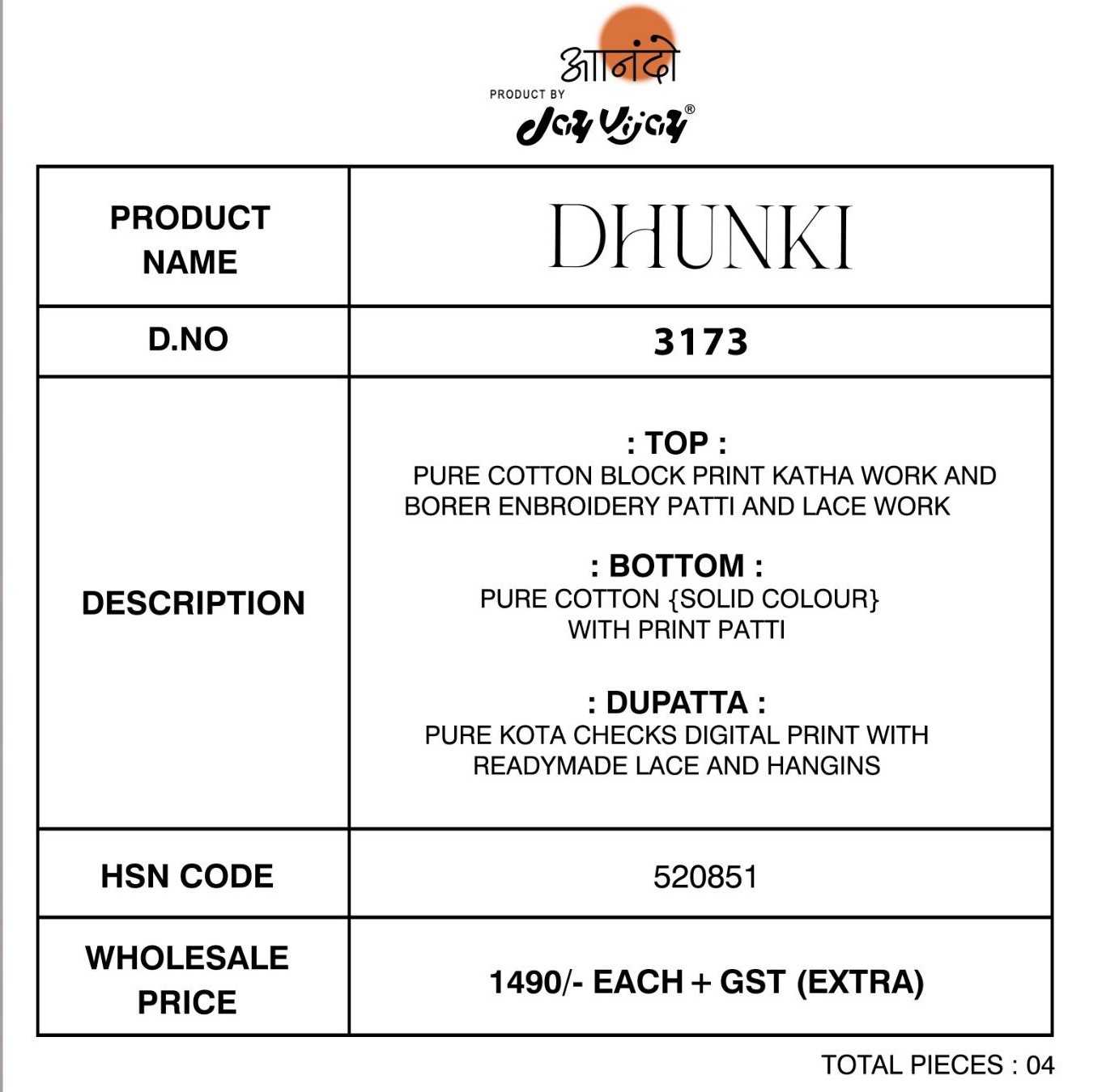 | Catalog | DHUNKI 3173Â |
