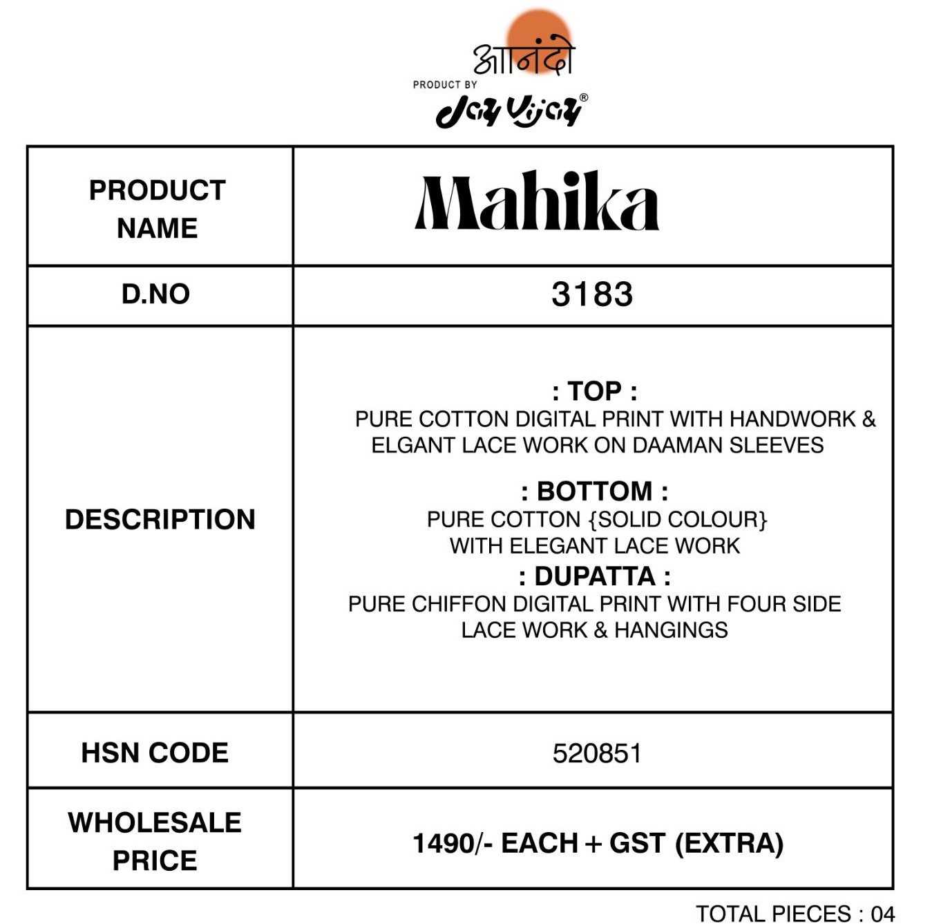 jayvijay anando mahika 3183 elegant cotton digital print with handwork unsticth suit