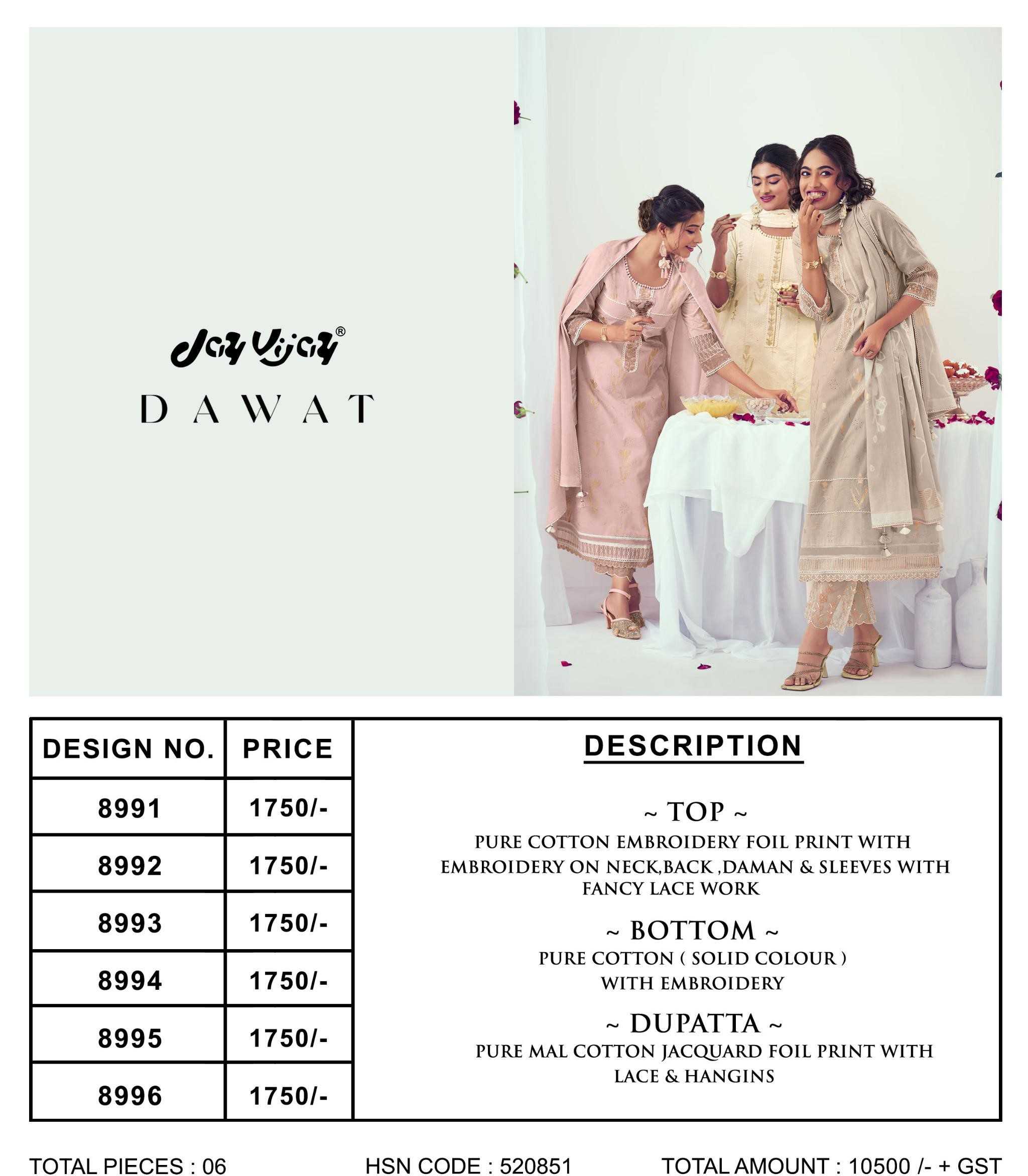 Jay Vijay Presents Latest Collection Launched on 15-04-2024. Presenting Beautiful collection of 6 PCS with Full Stitched .