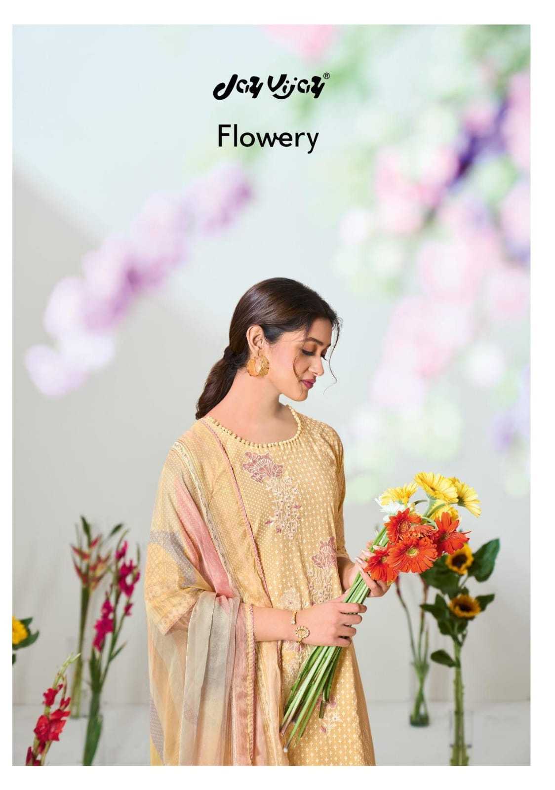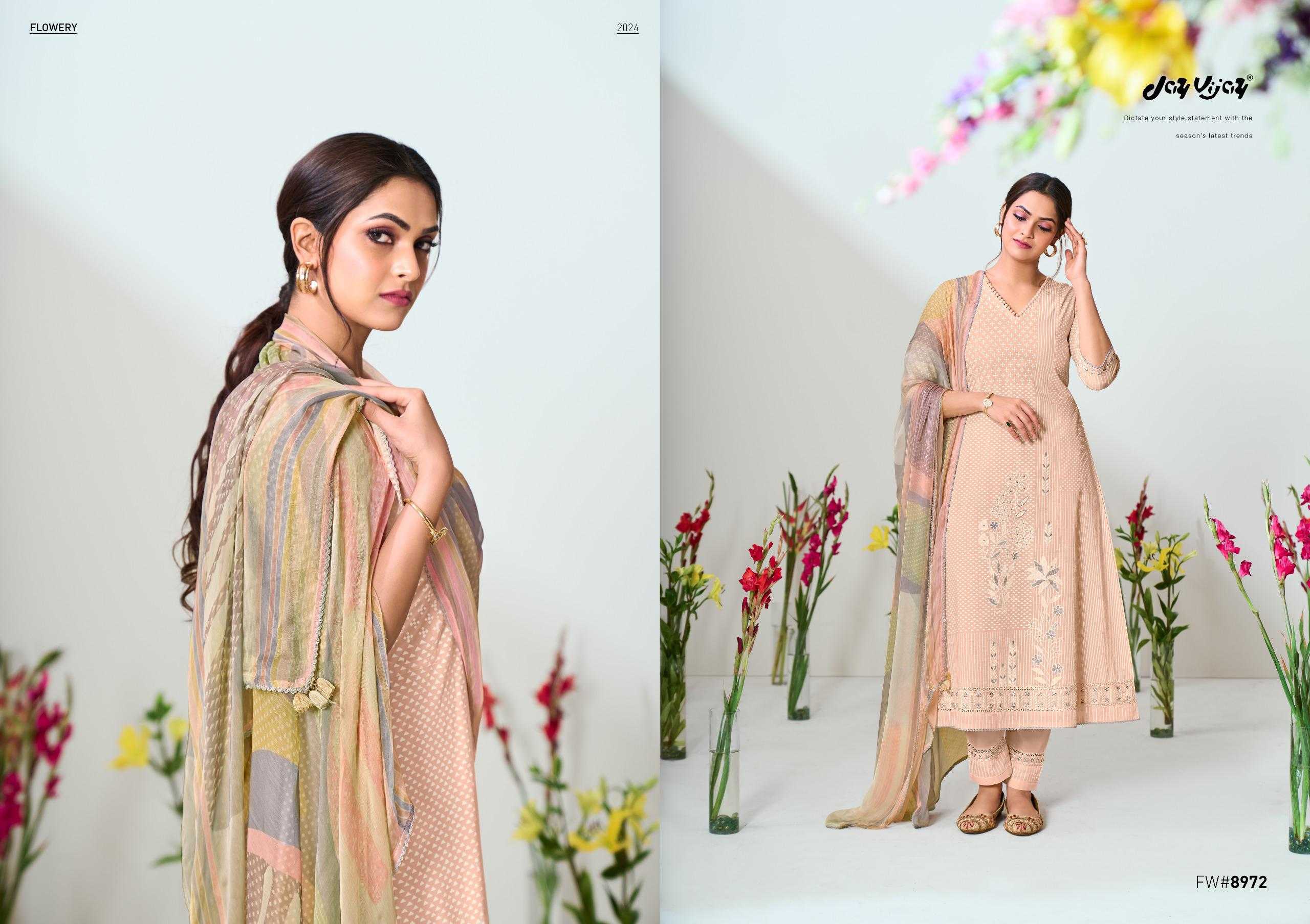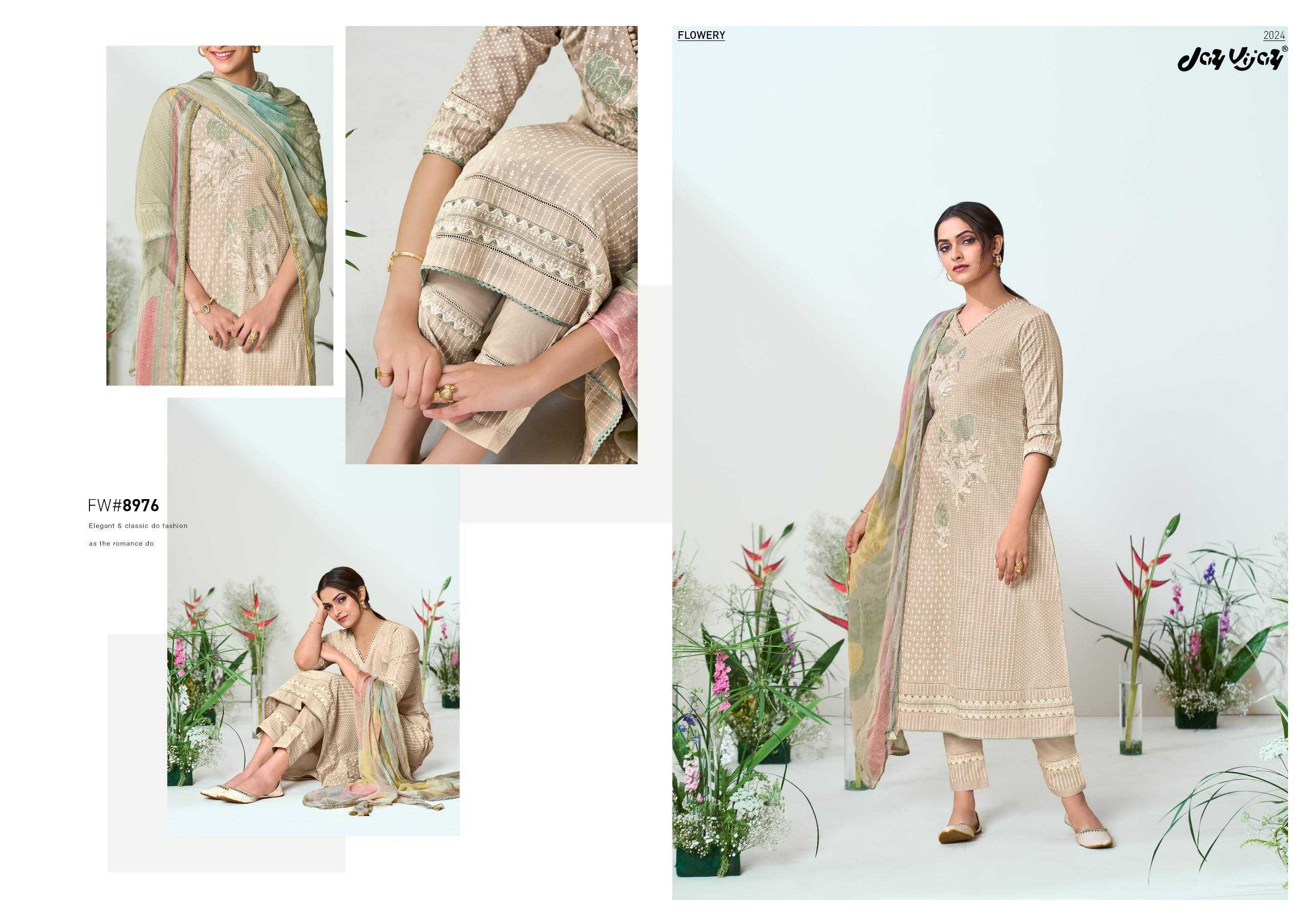 jayvijay flowery classy look embroidery work dress material