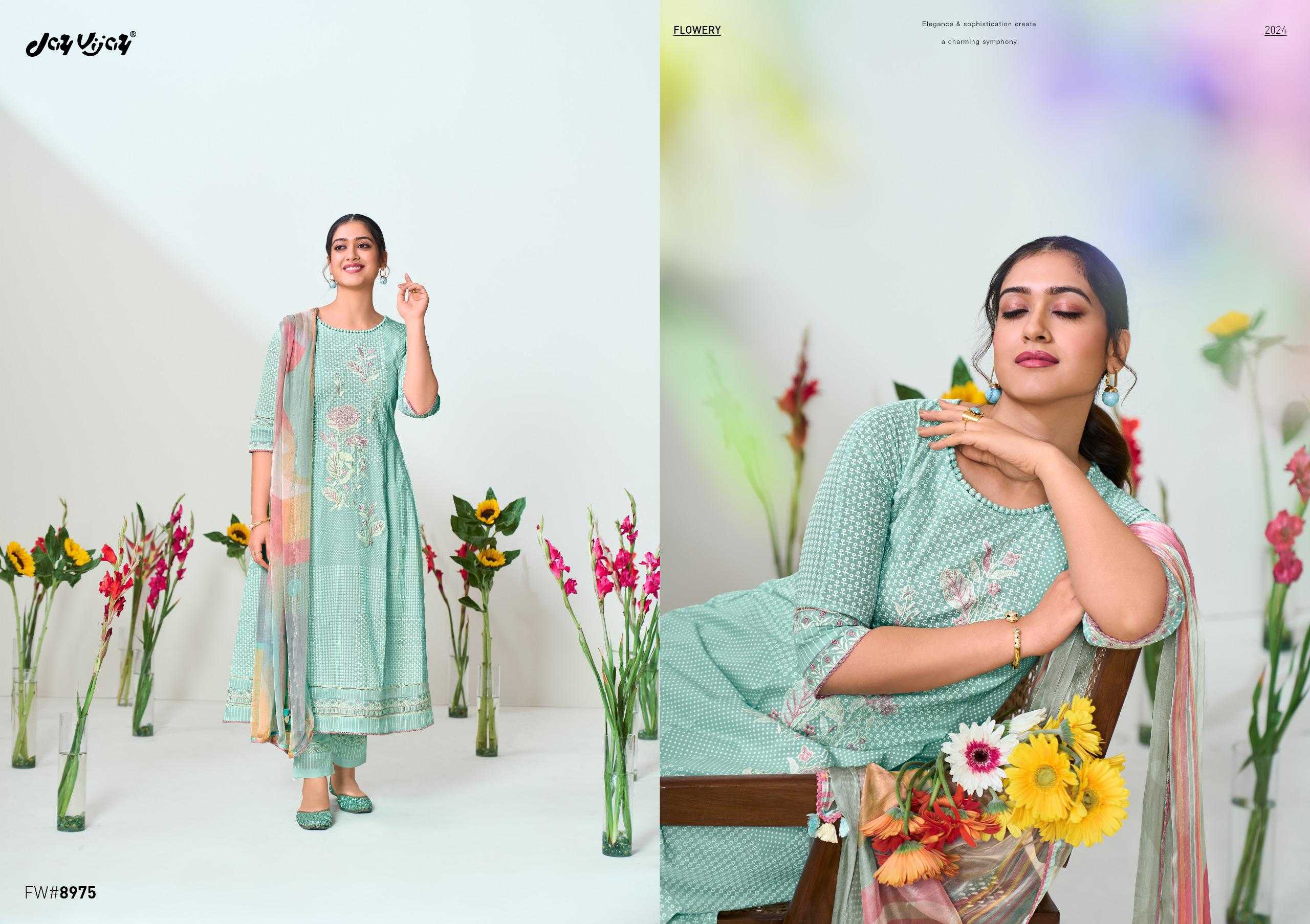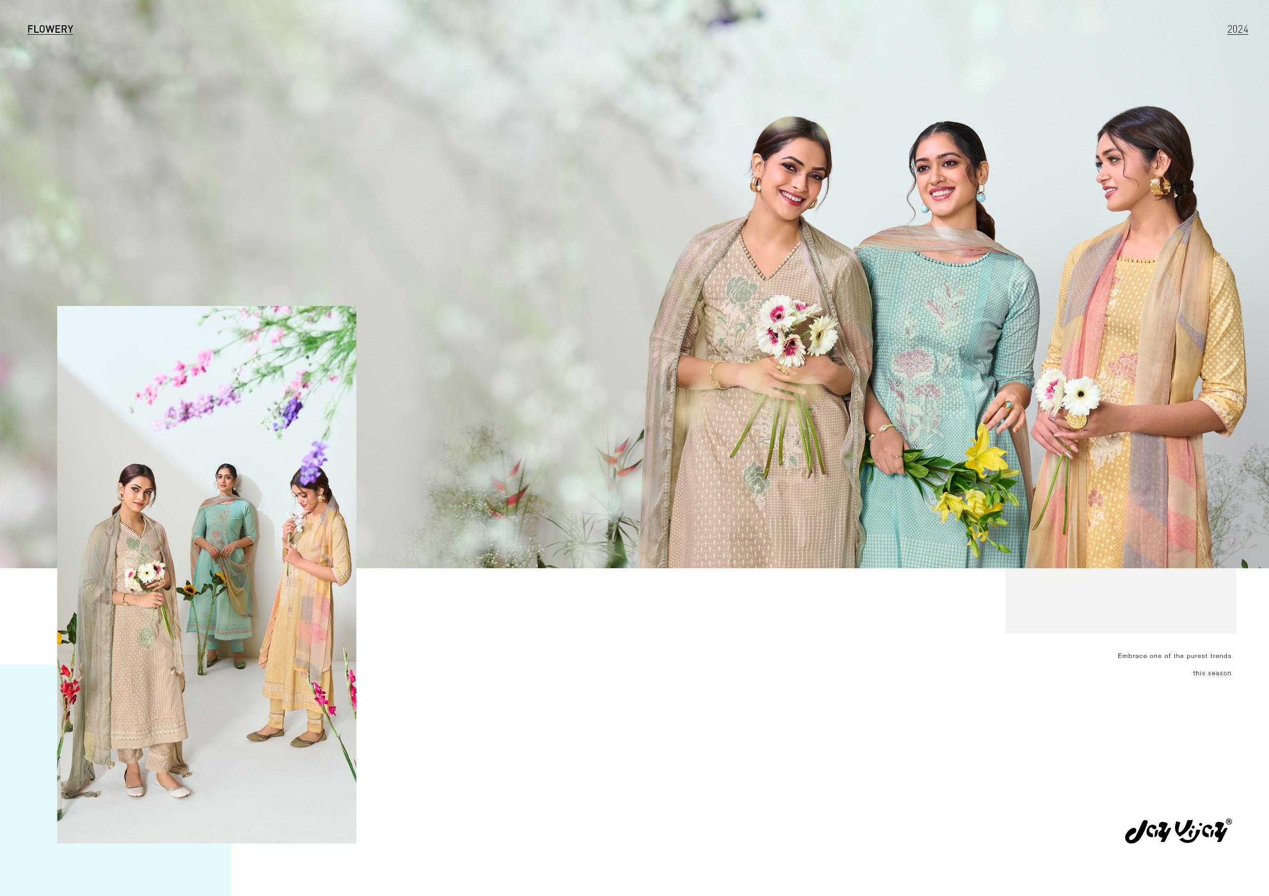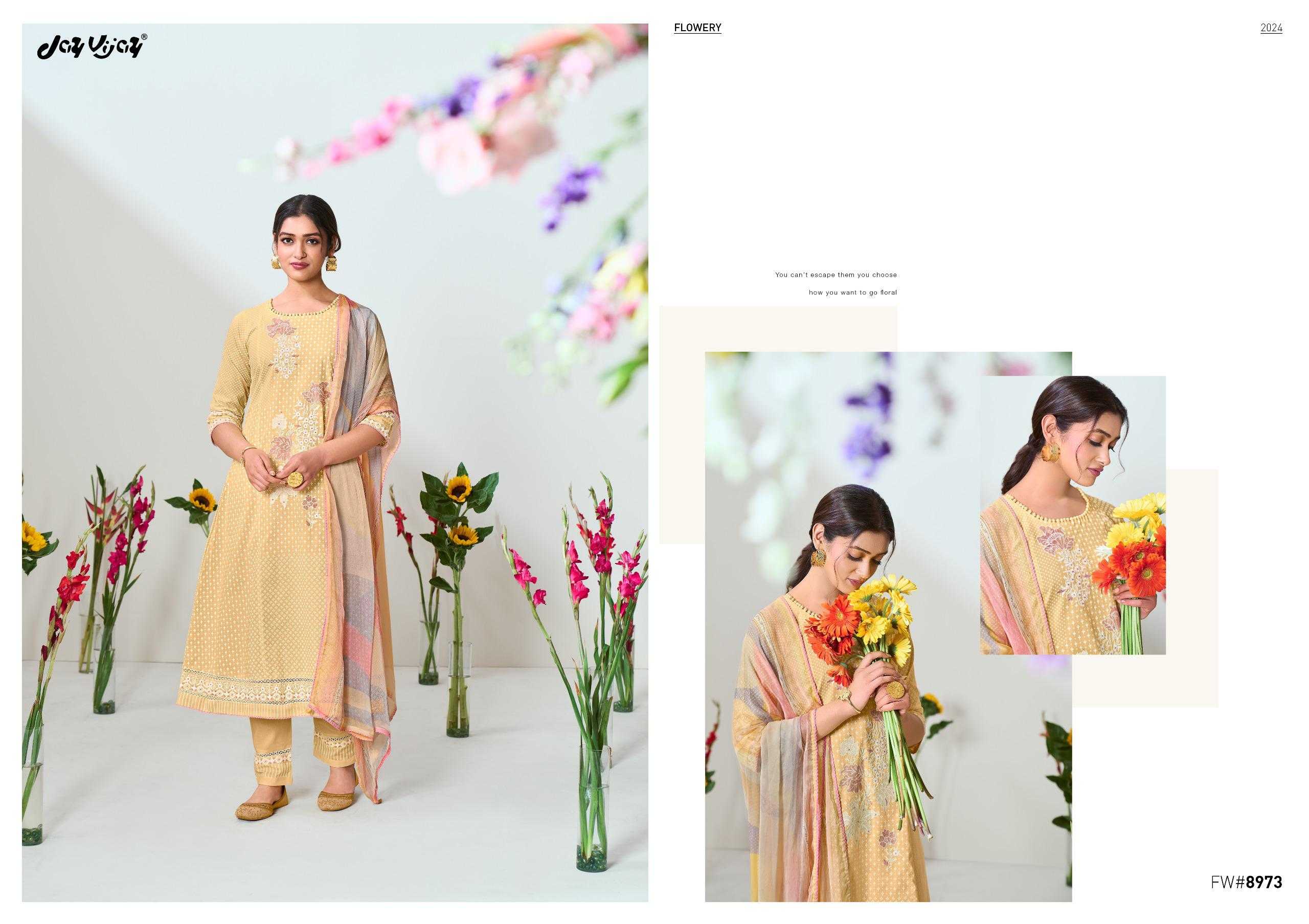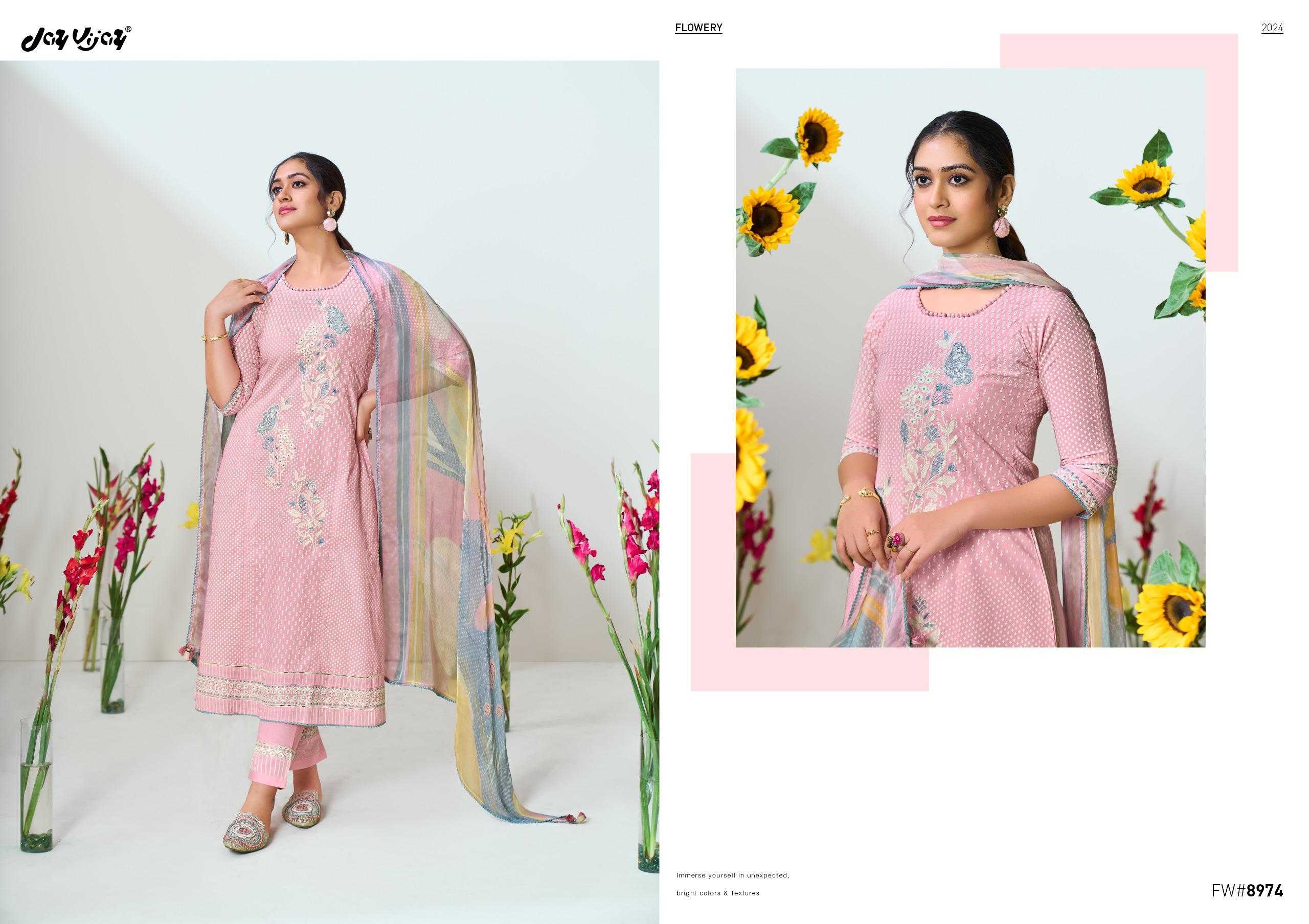 jayvijay flowery classy look embroidery work dress material