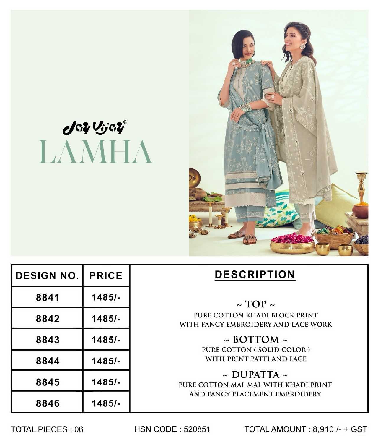 jayvijay lamha 8841-8846 fancy khadi print with embroidery dress material