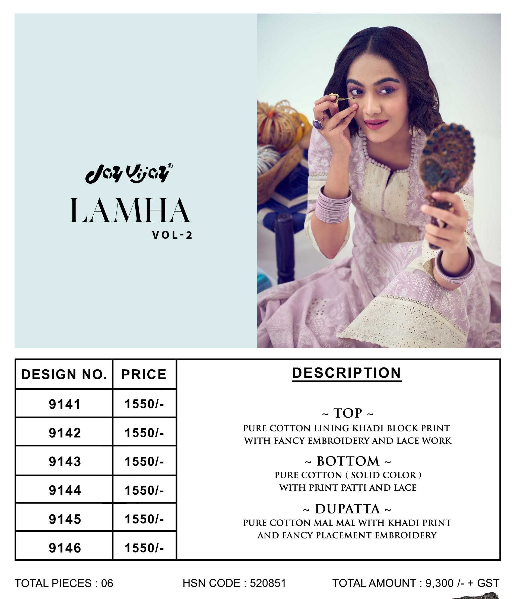 jayvijay lamha vol 2 classy look cotton embroidery work unstitch suit