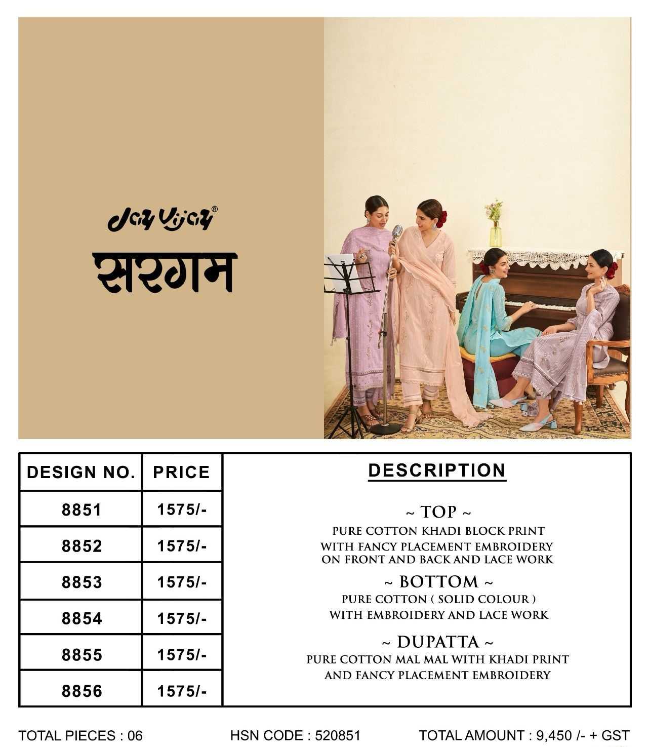 Jay Vijay Presents Latest Collection Launched on 09-02-2024. Presenting Beautiful collection of 6 PCS with Unstitched .