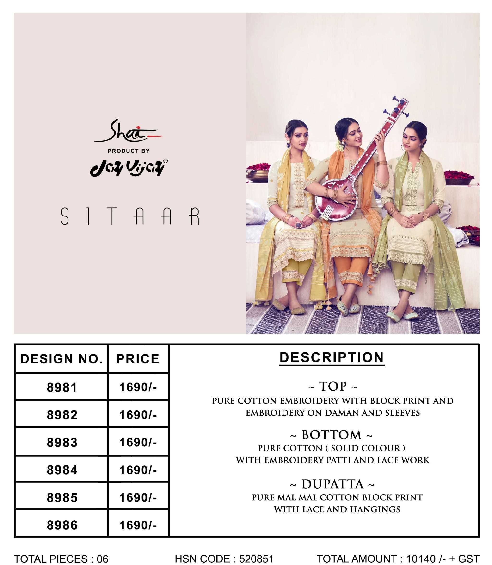jayvijay sitaar classy look cotton embroidery work unstitch suit