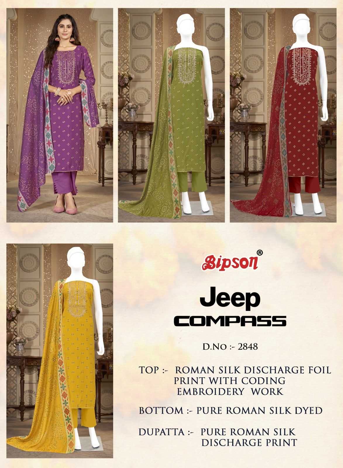 jeep compass 2848 by bipson prints roman silk daily wear suit for women