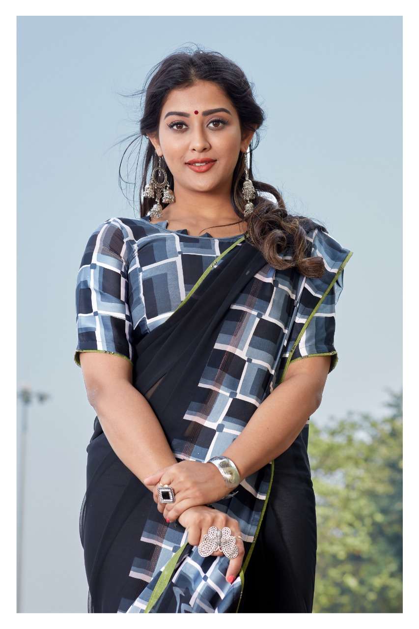 S.R. JEEVIKA (BLACK SPECIAL) Weightless Sartin Border With Applics With Value Additions Rate - 630/- Pcs - 05 Delivery 2-3 Days |