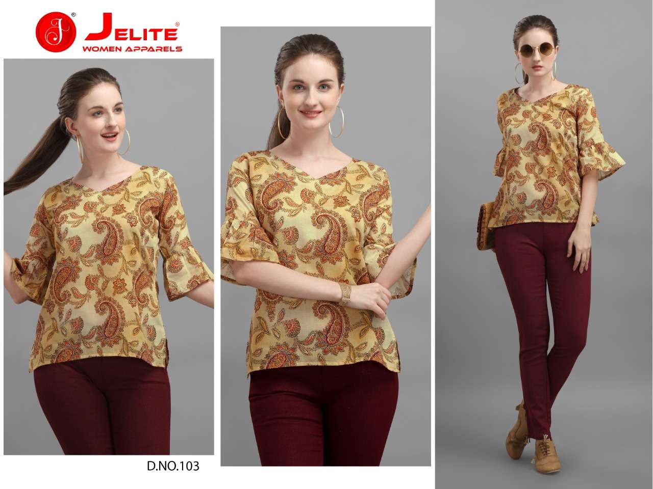 JELITE presents MARIGOLD Featuring the latest in-season collection of TOPS that will boost your personal style. Get your hands on these extra comfortable high-fashion trending pieces of Jelite Tops now! Fabric : Cotton Digital printed Sizes : S, M, L & Xl, Xxl (36, 38, 40, 42 & 44) Designs: Total 8 designs Price : 299/- ₹ per pc |