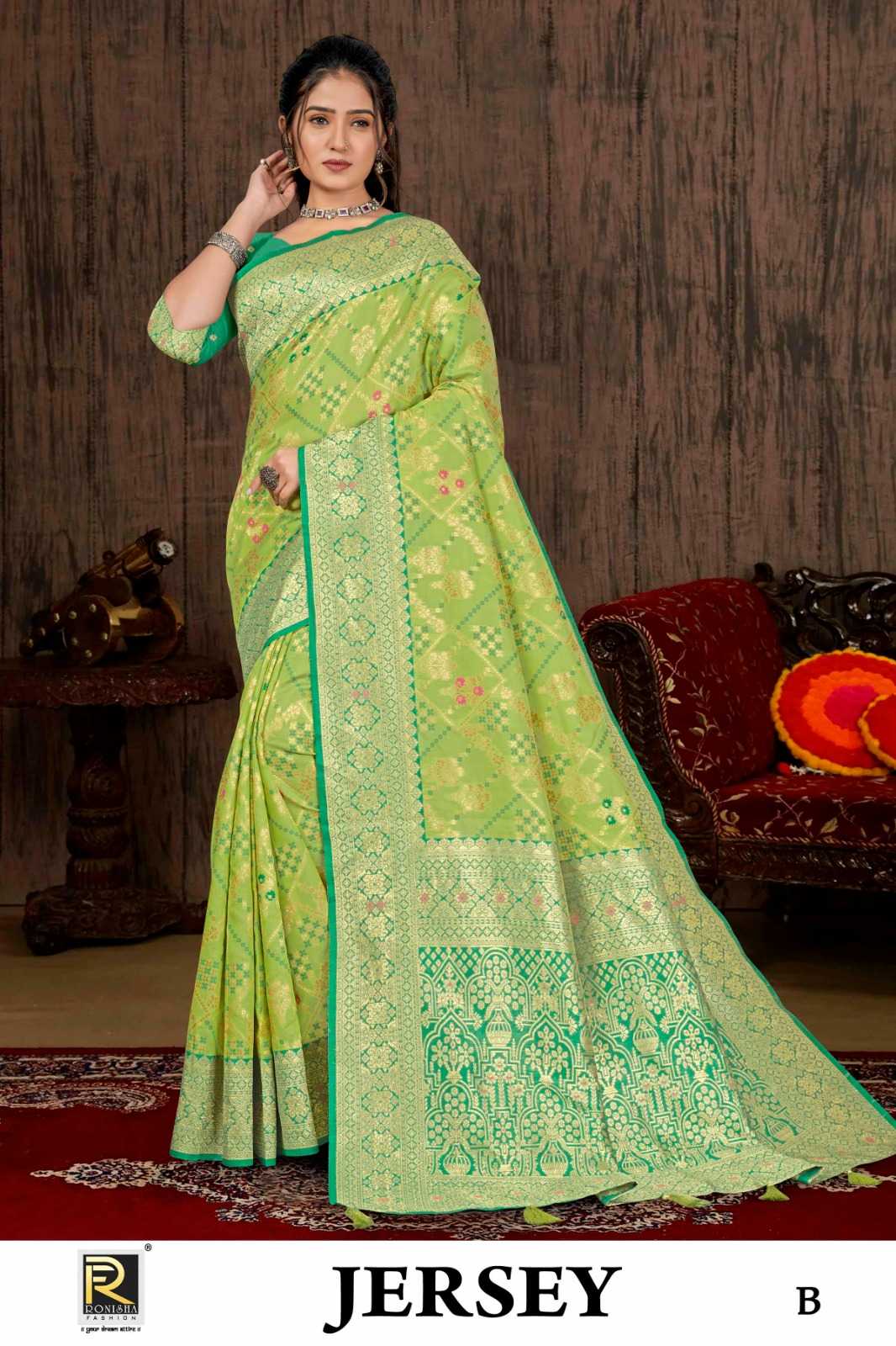 JERSEY BY RANJNA SAREE BANARASI SILK PREMIUM FABRICS SUPER HIT COLLECTION SAREES