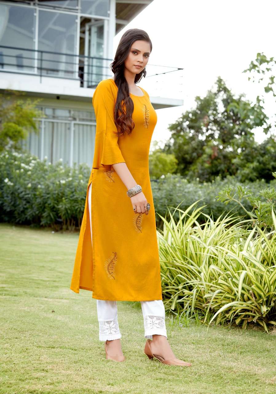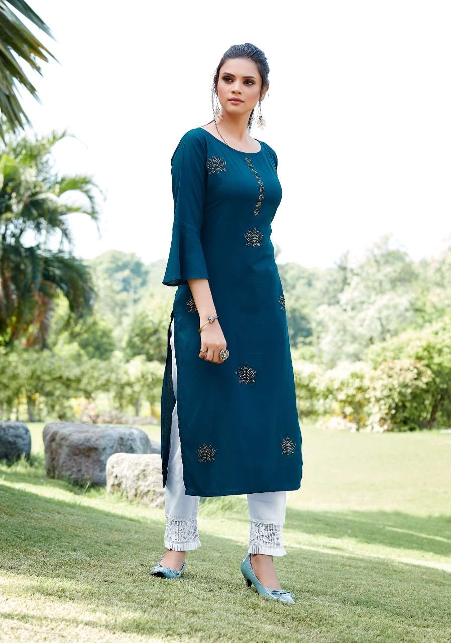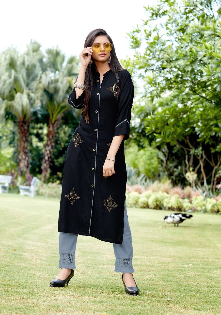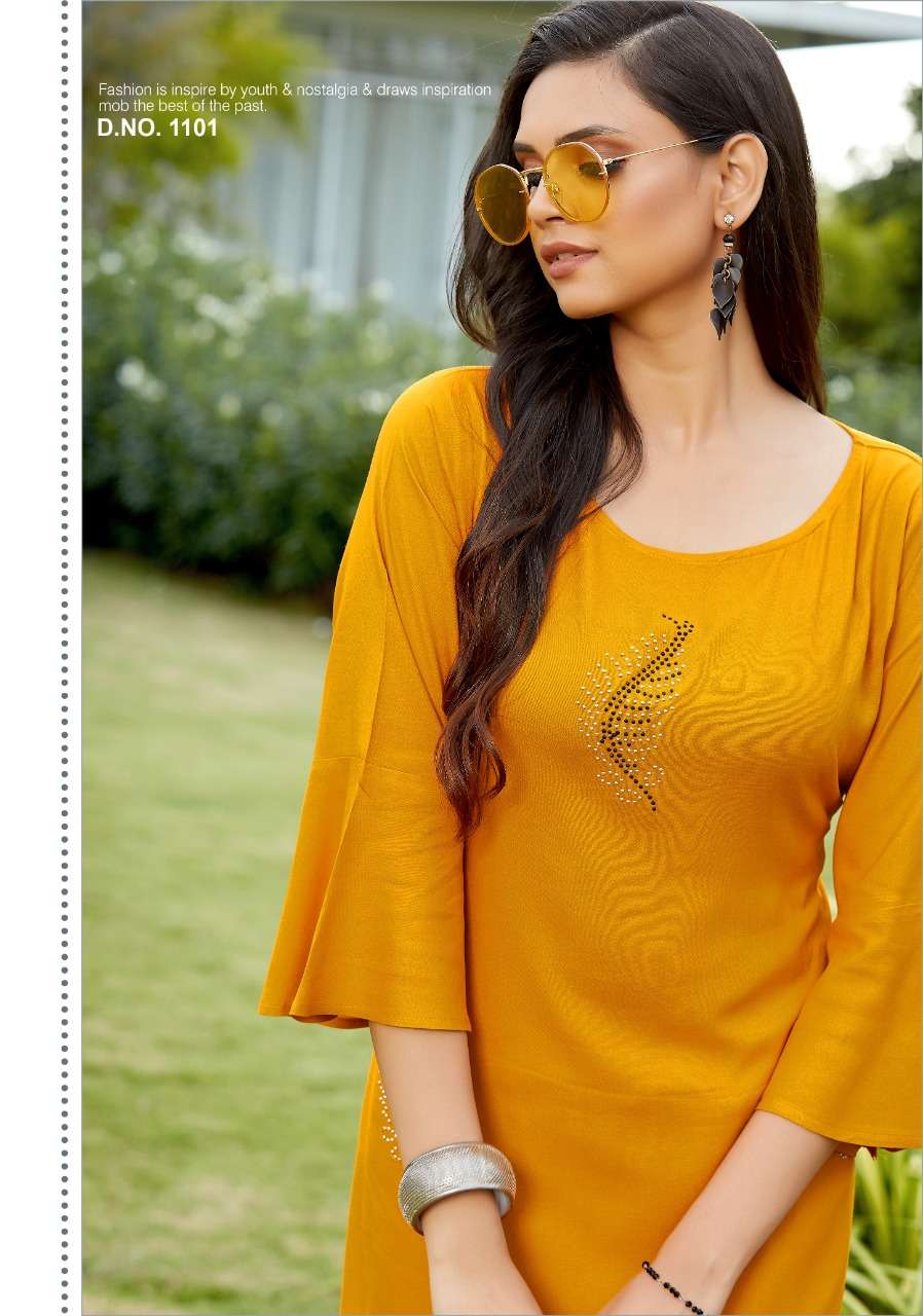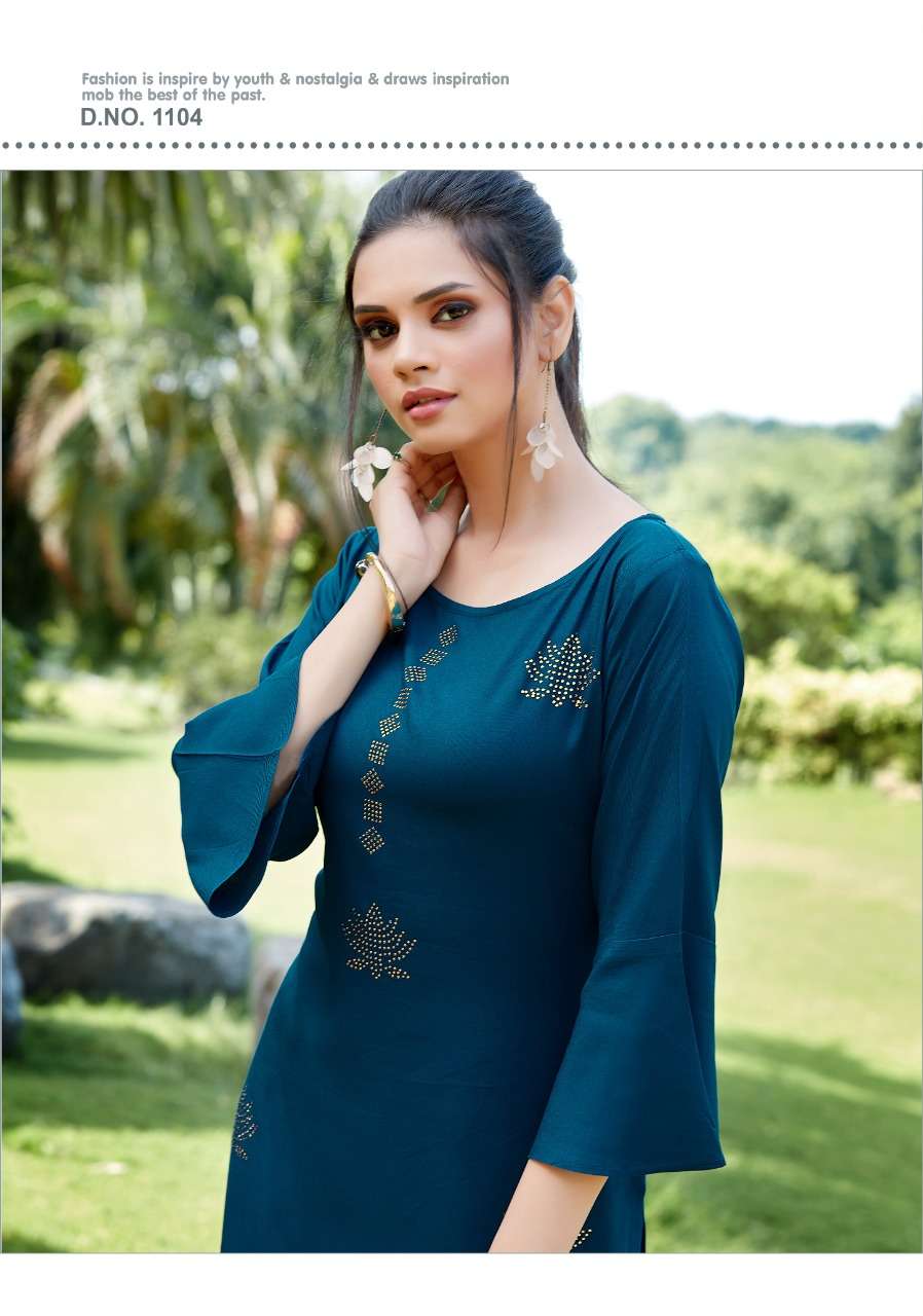 JHALA IMPEX    Presents New catalog .. kohinor volume 3 Type.. Street Long Kurtis side Cut Fabric.Top. 14 kg Rayon WORK.. DIAMOND WORK S I Z E â  M, L, XL, XXL, 3XL TOP-L E N G T H â  45 Inc D E S I G N S â 7 PCS / SET Rate- 450 per pcs Set to set |