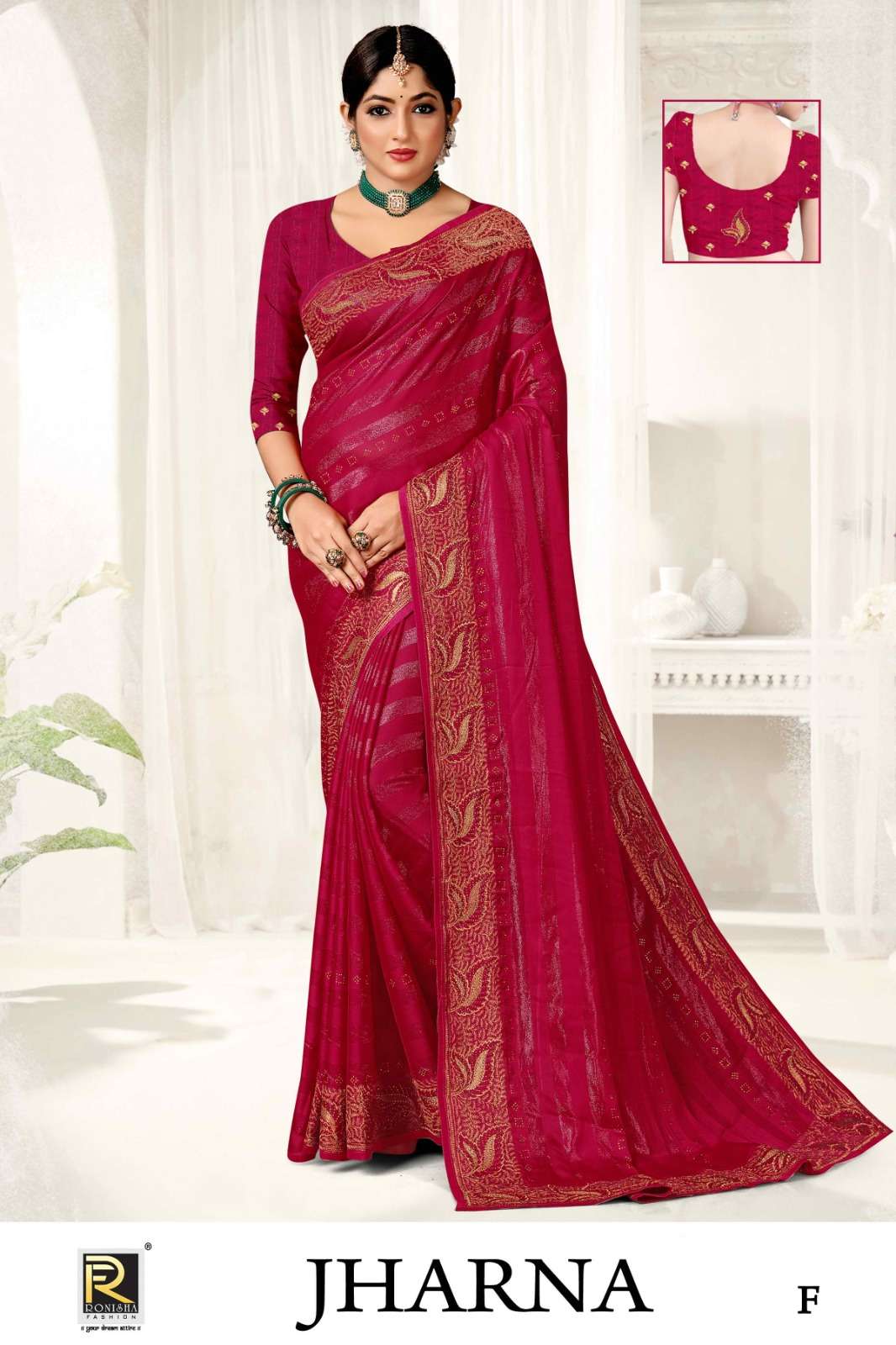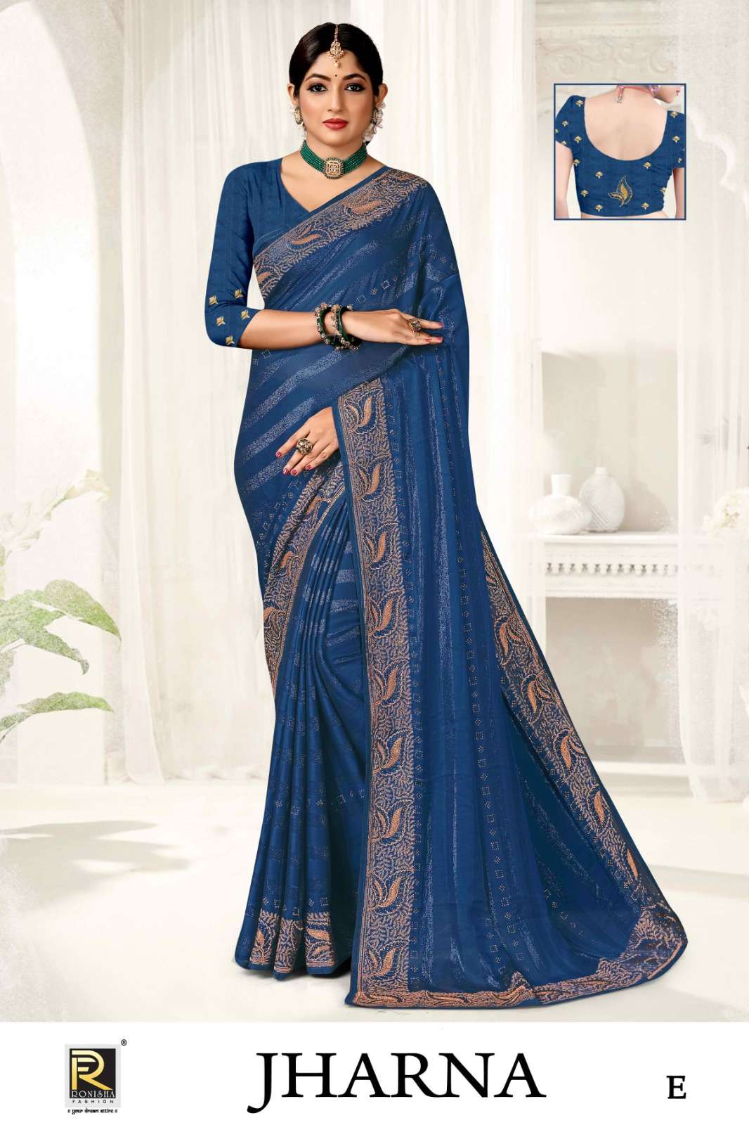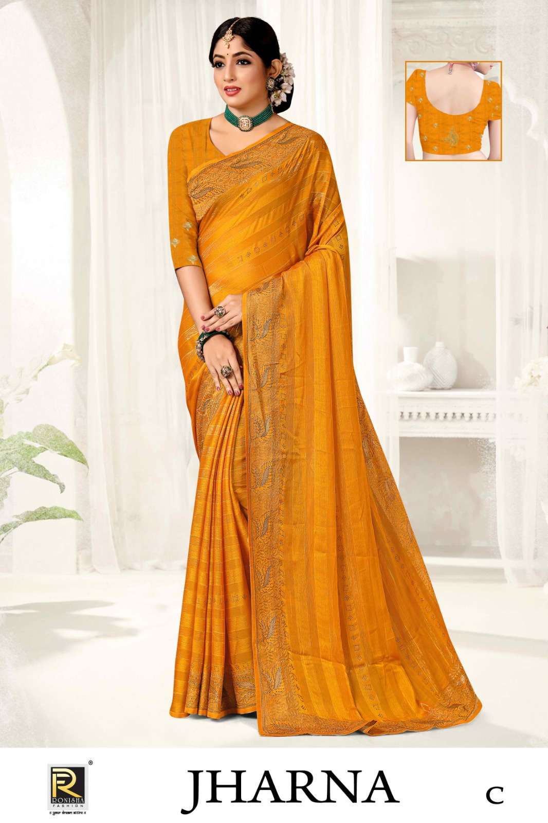 JHARNA BY RANJNA SAREE FANCY FABRICS SELF PETTERN WITH EMBROIDERY WORK AND SIROSKI DIAMOND WORK SUPER HIT COLLECTION