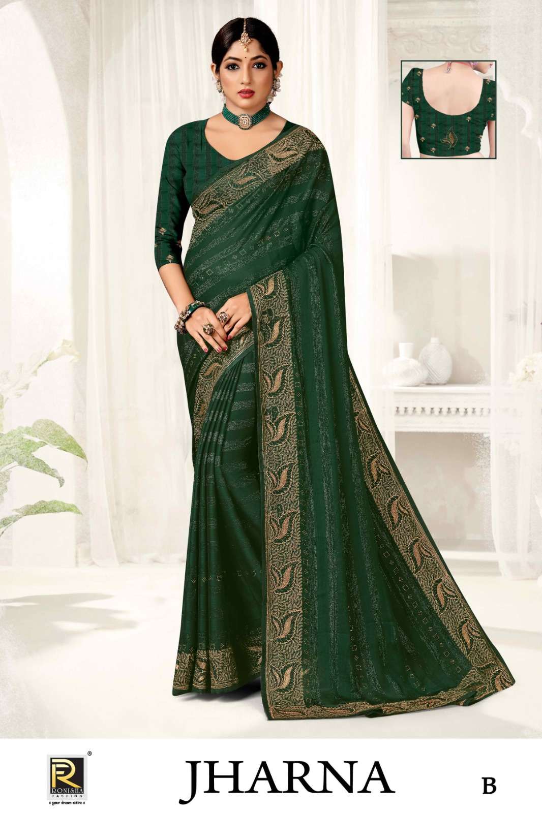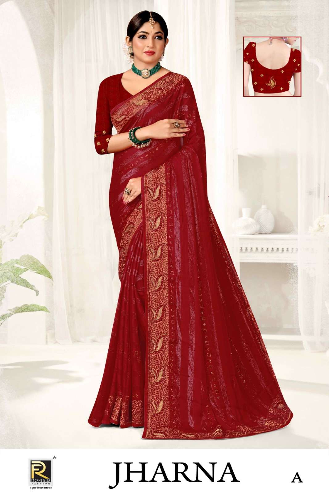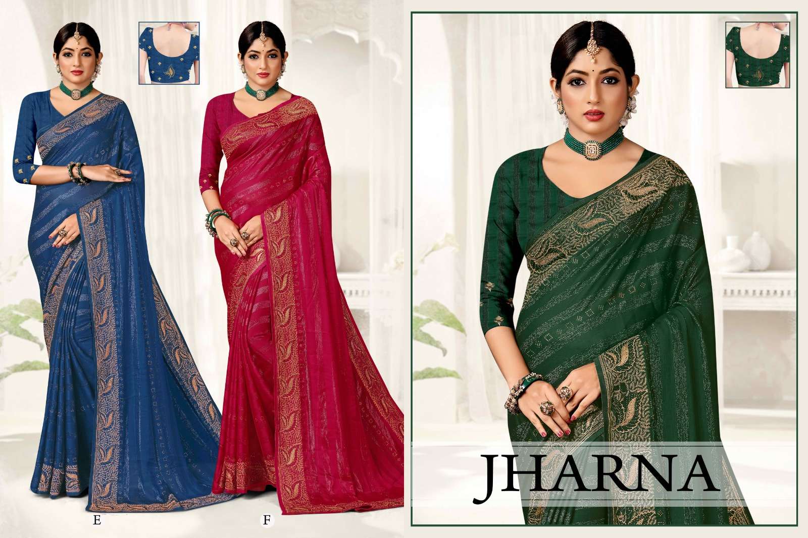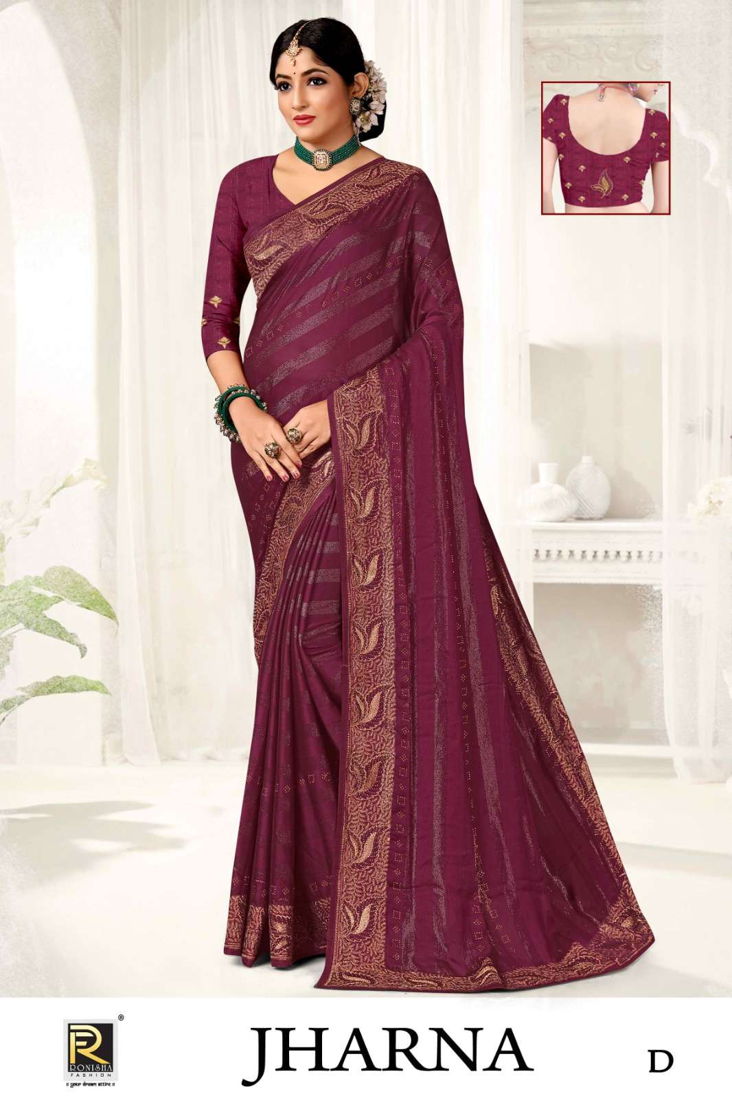 JHARNA BY RANJNA SAREE FANCY FABRICS SELF PETTERN WITH EMBROIDERY WORK AND SIROSKI DIAMOND WORK SUPER HIT COLLECTION