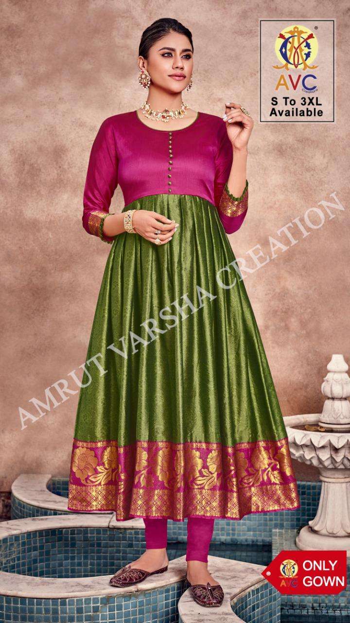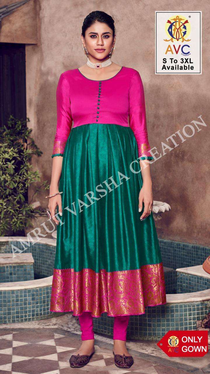 "SHREE”😊 Gown👗:-Lichi Silk Jacquard Inner :-Crap Per Pes. Foto. Or Per Set Ctlog Book Patern:-Silk Gown Readymade |