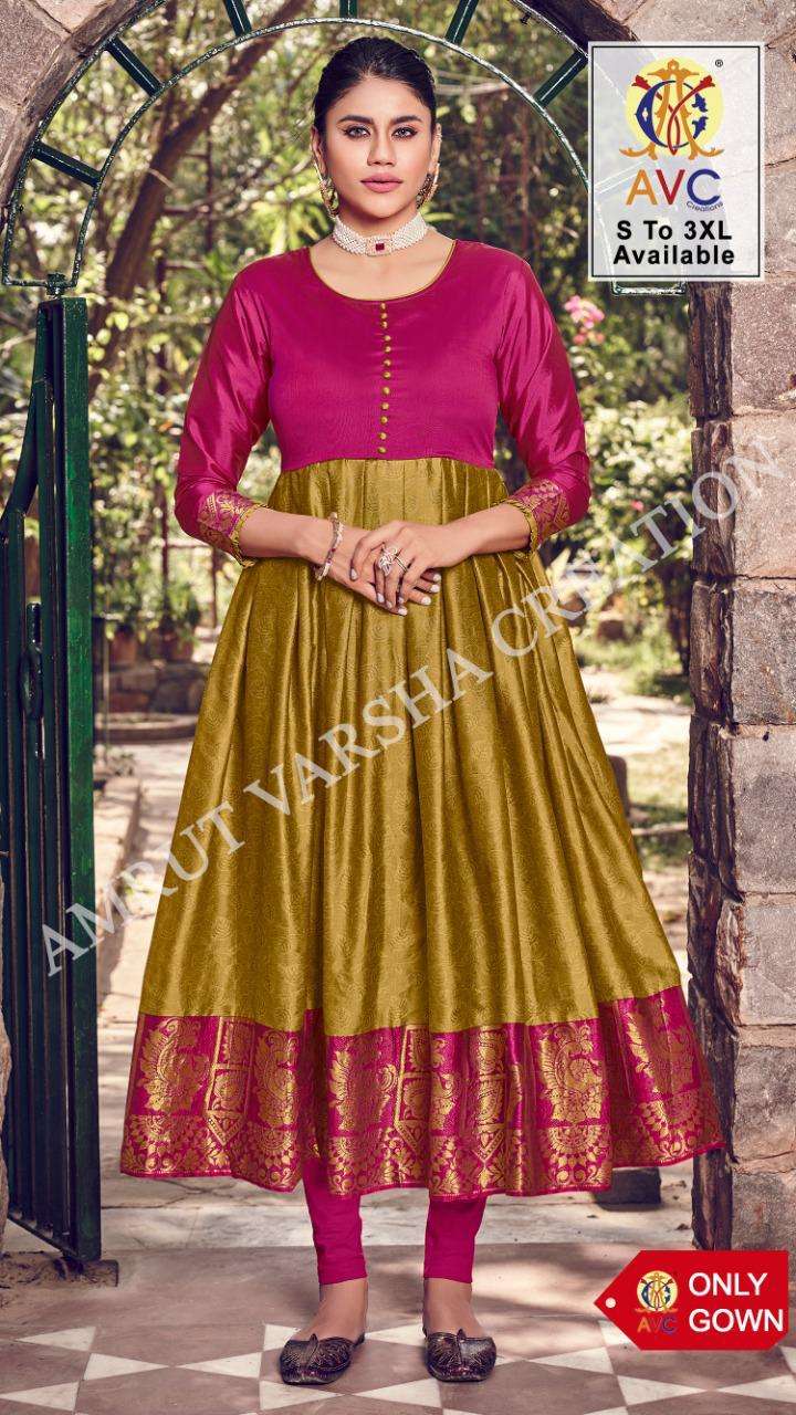 jheel by avc silk jacquard long gown for summer collection
