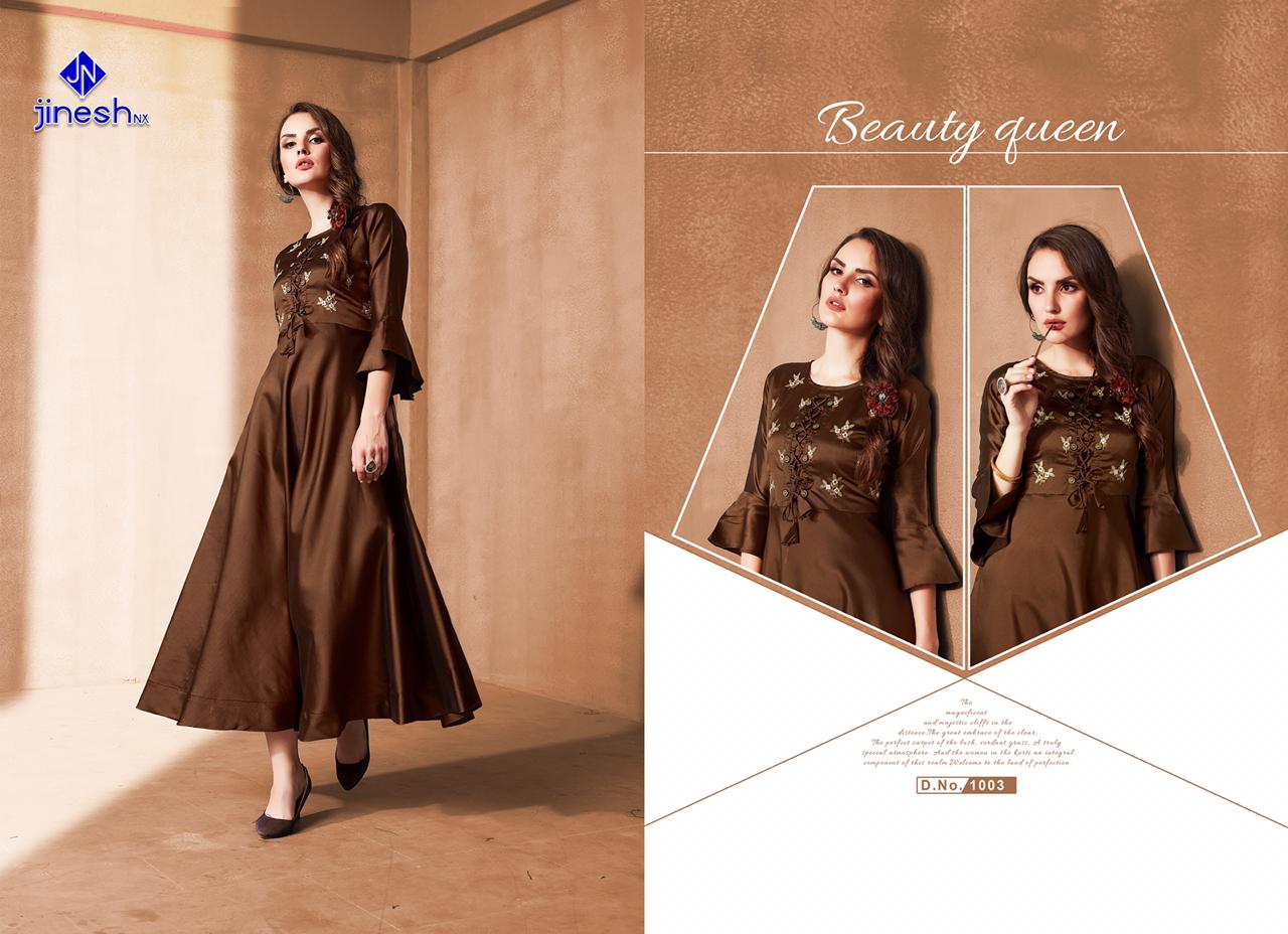 Jinesh Nx Pankhida Vol 1 Tapeta Satin Long Gown Style Kurti Collection