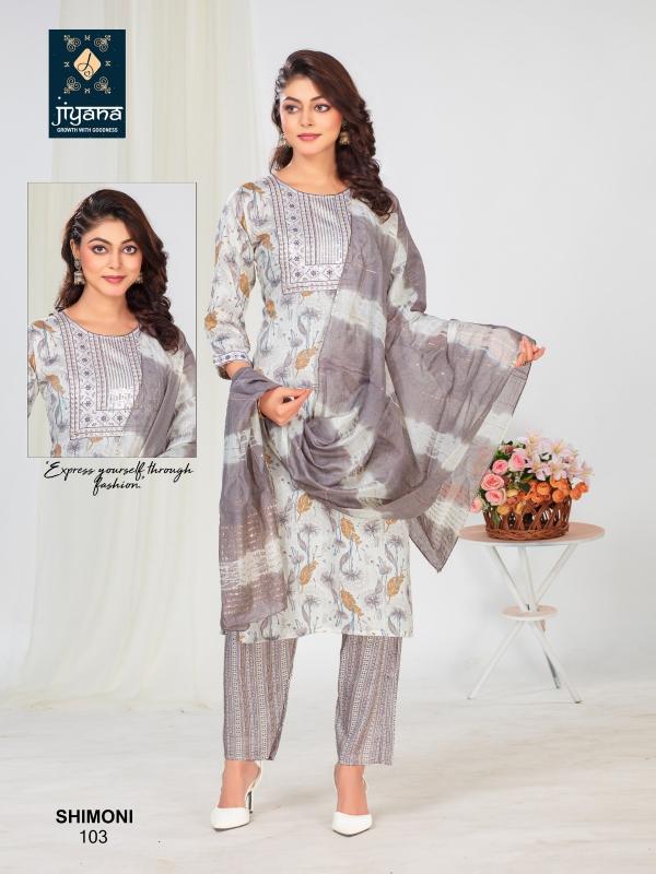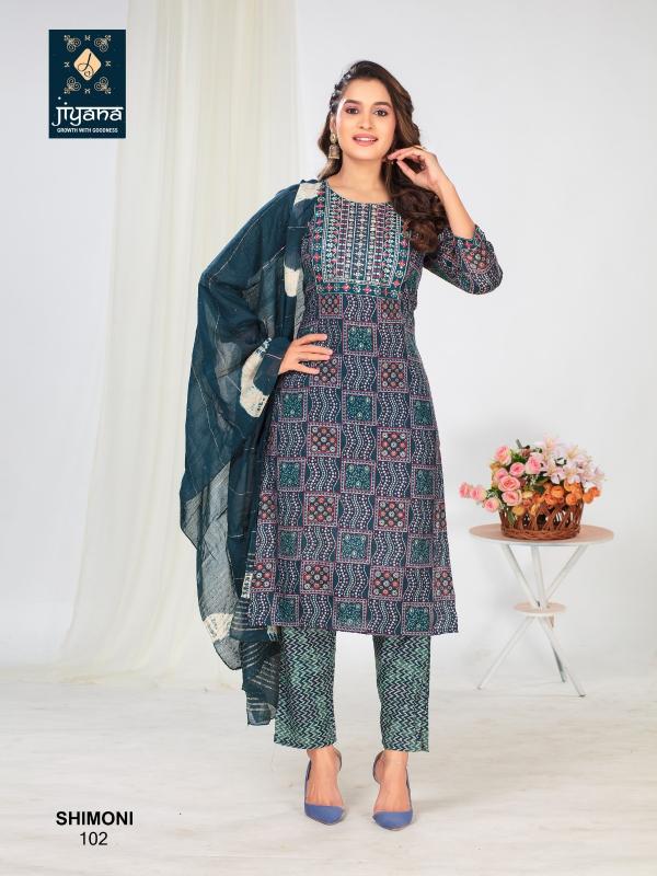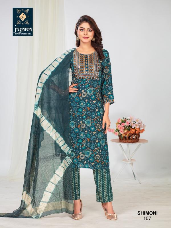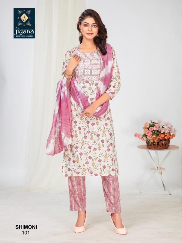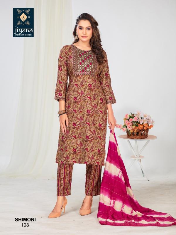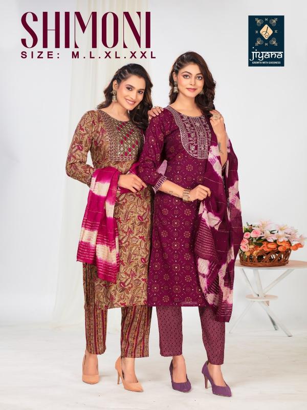 jiyana shimoni foil printed rayon readymade collection 3pcs dress