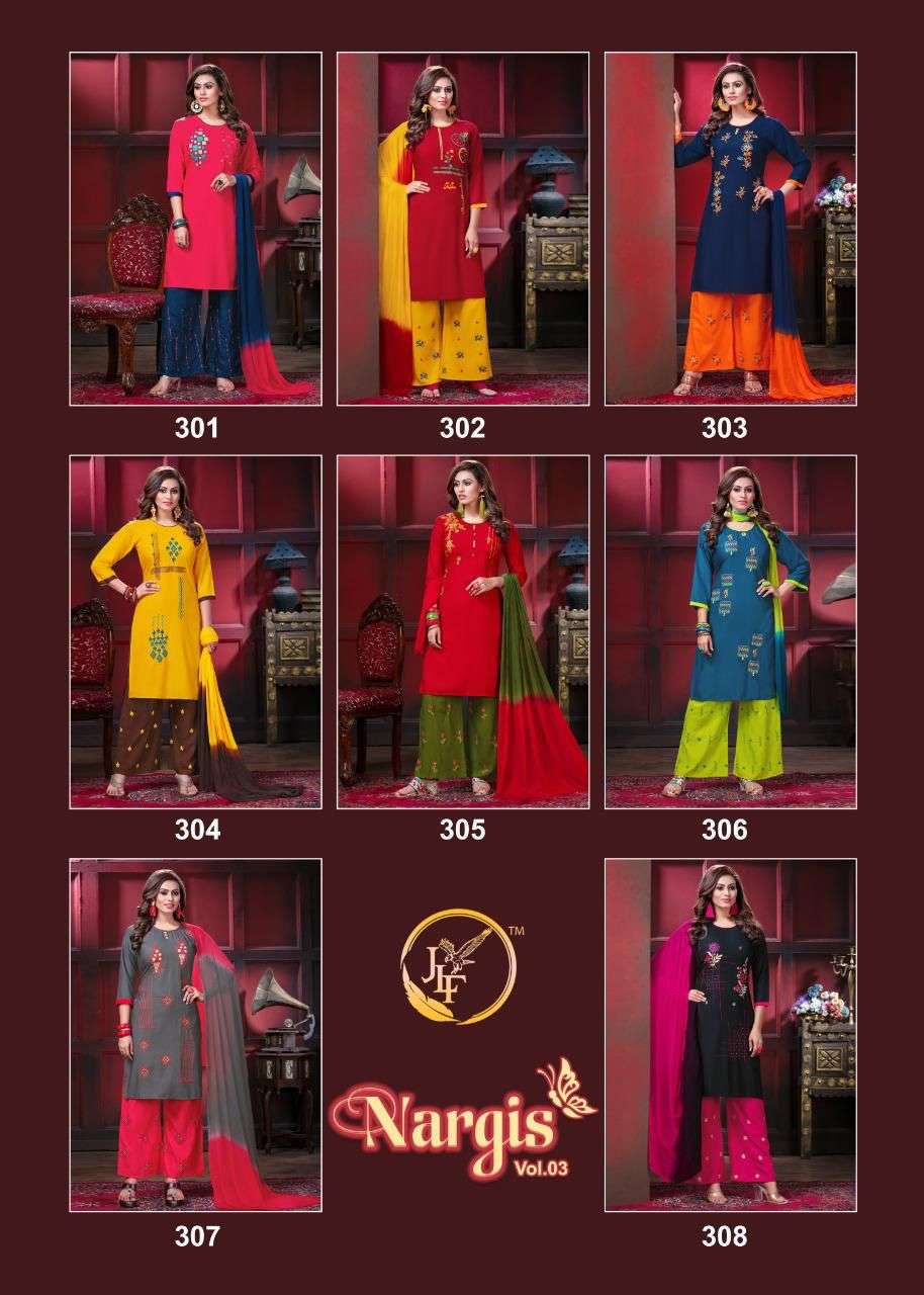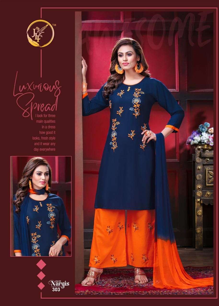 JLF NARGIS vol-3 RAYON READYMADE SUIT CATALOG WHOLESALER BEST RATE