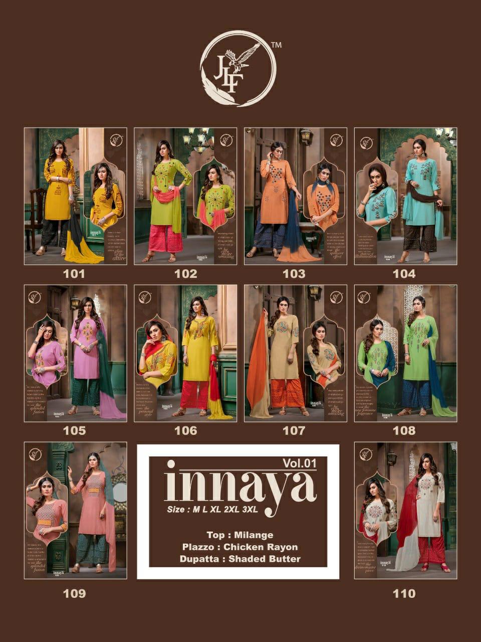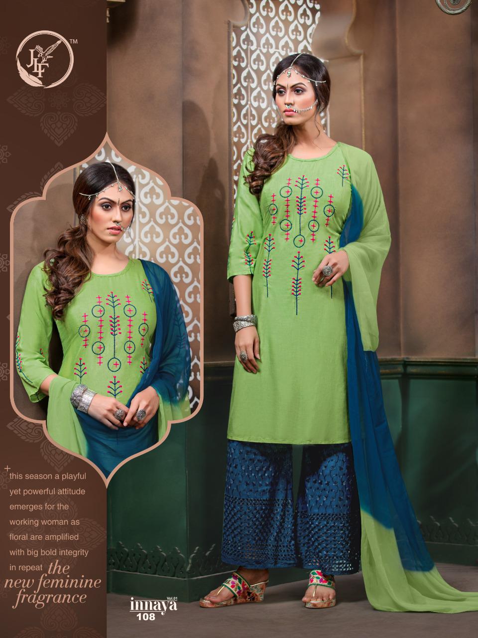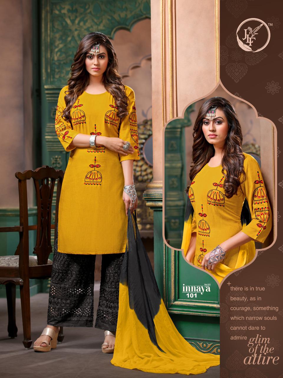 Jlf Presenting Innaya Vol 1 Rayon With Work Readymade Kurti Plazzo With Fancy Dupatta