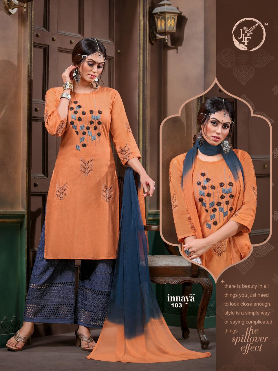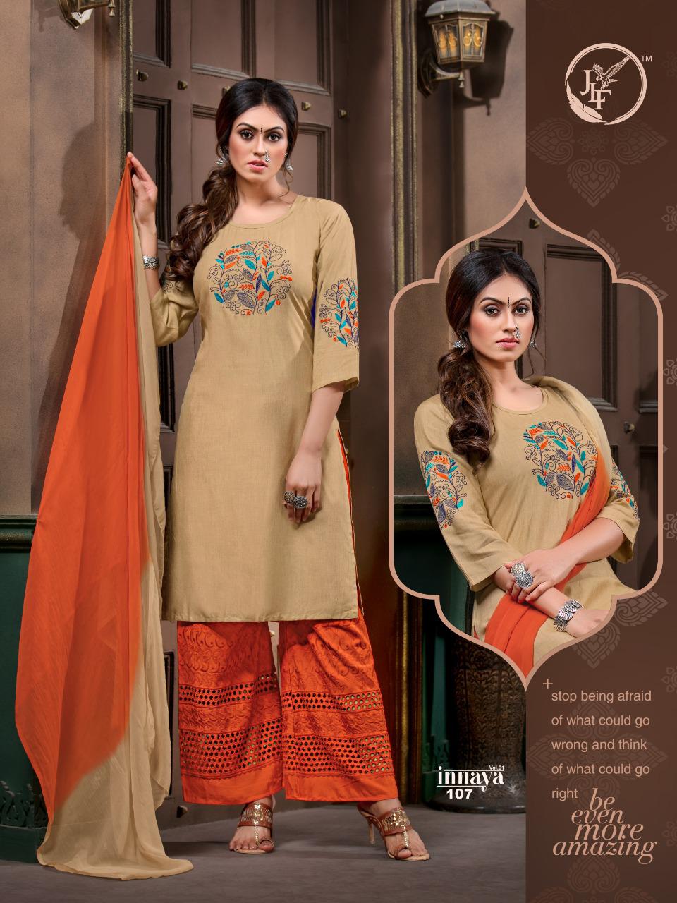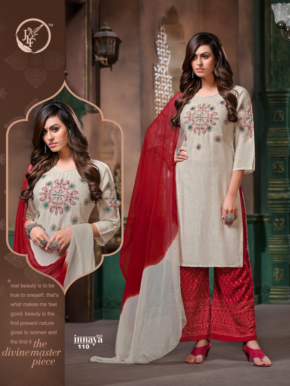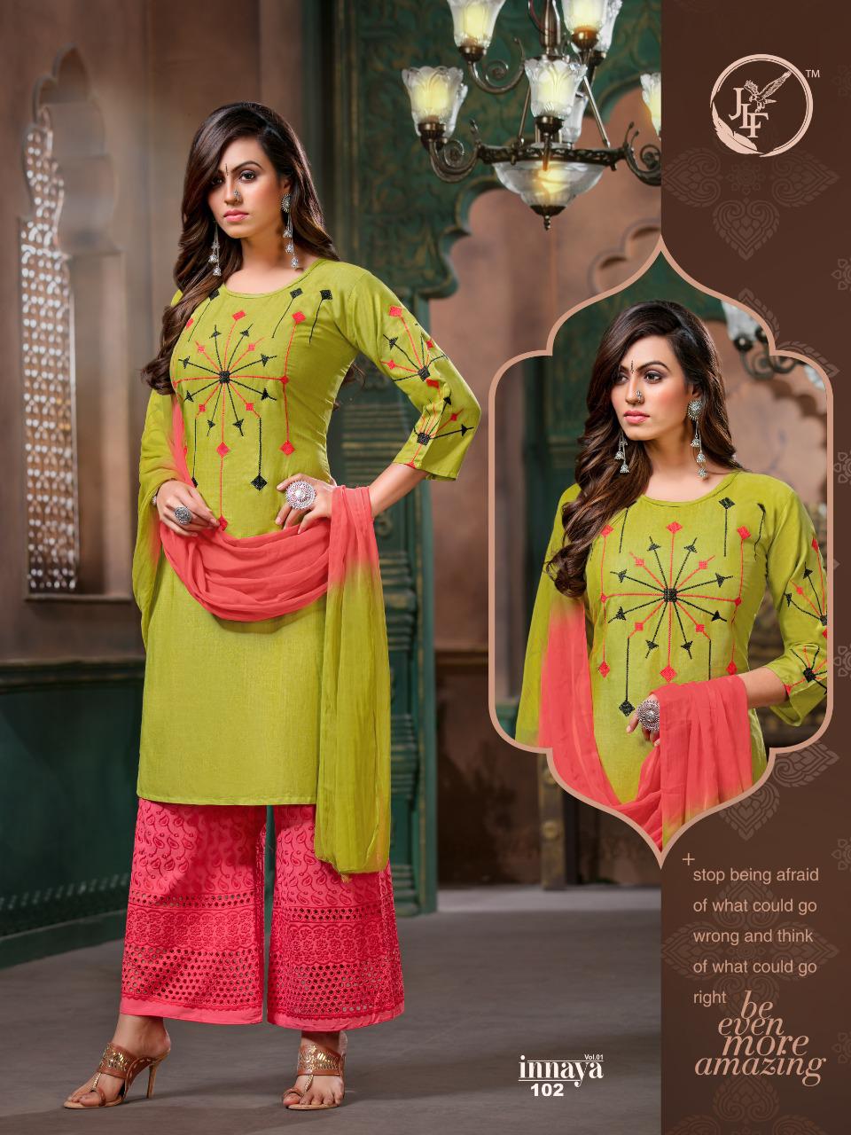 Jlf Presenting Innaya Vol 1 Rayon With Work Readymade Kurti Plazzo With Fancy Dupatta