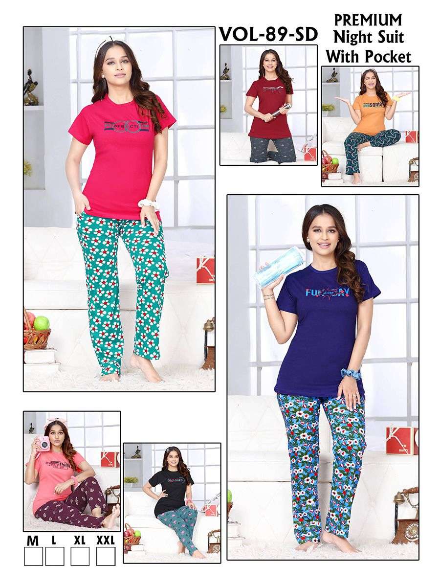 JLF VOL.89 A Heavy Shinker Hosiery Cotton Night Suits Plain & Print With Pocket CATALOG WHOLESALER BEST RATE