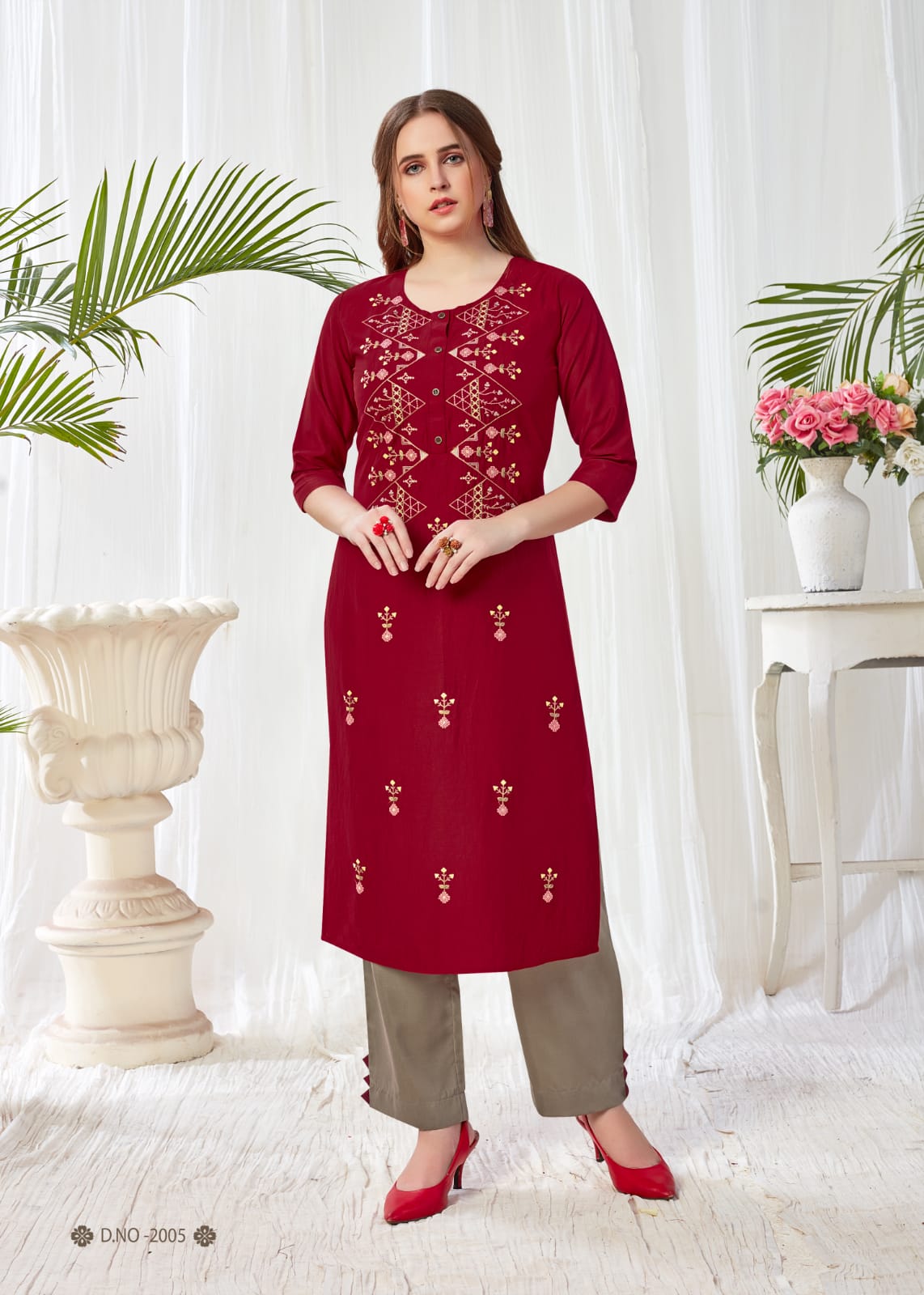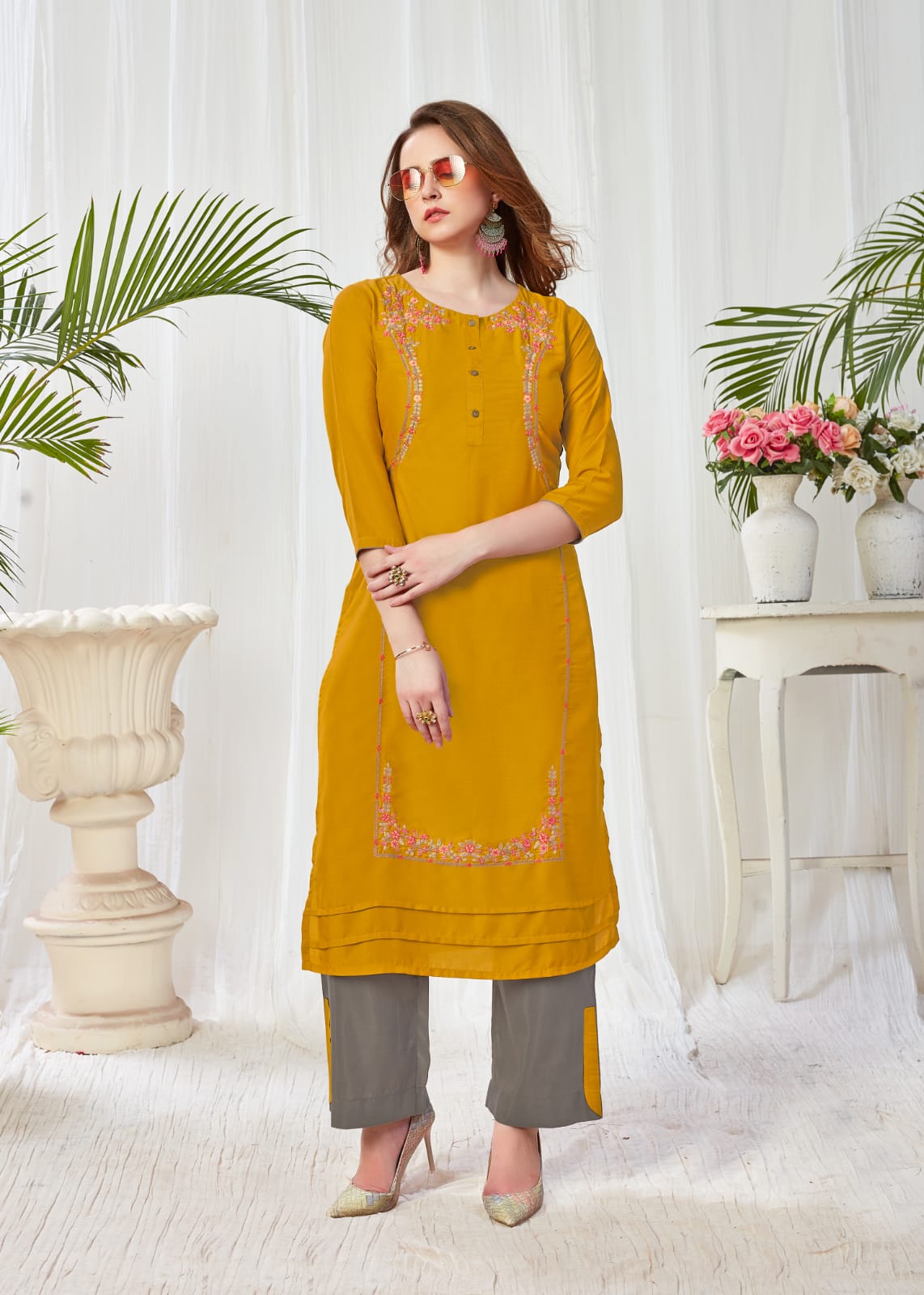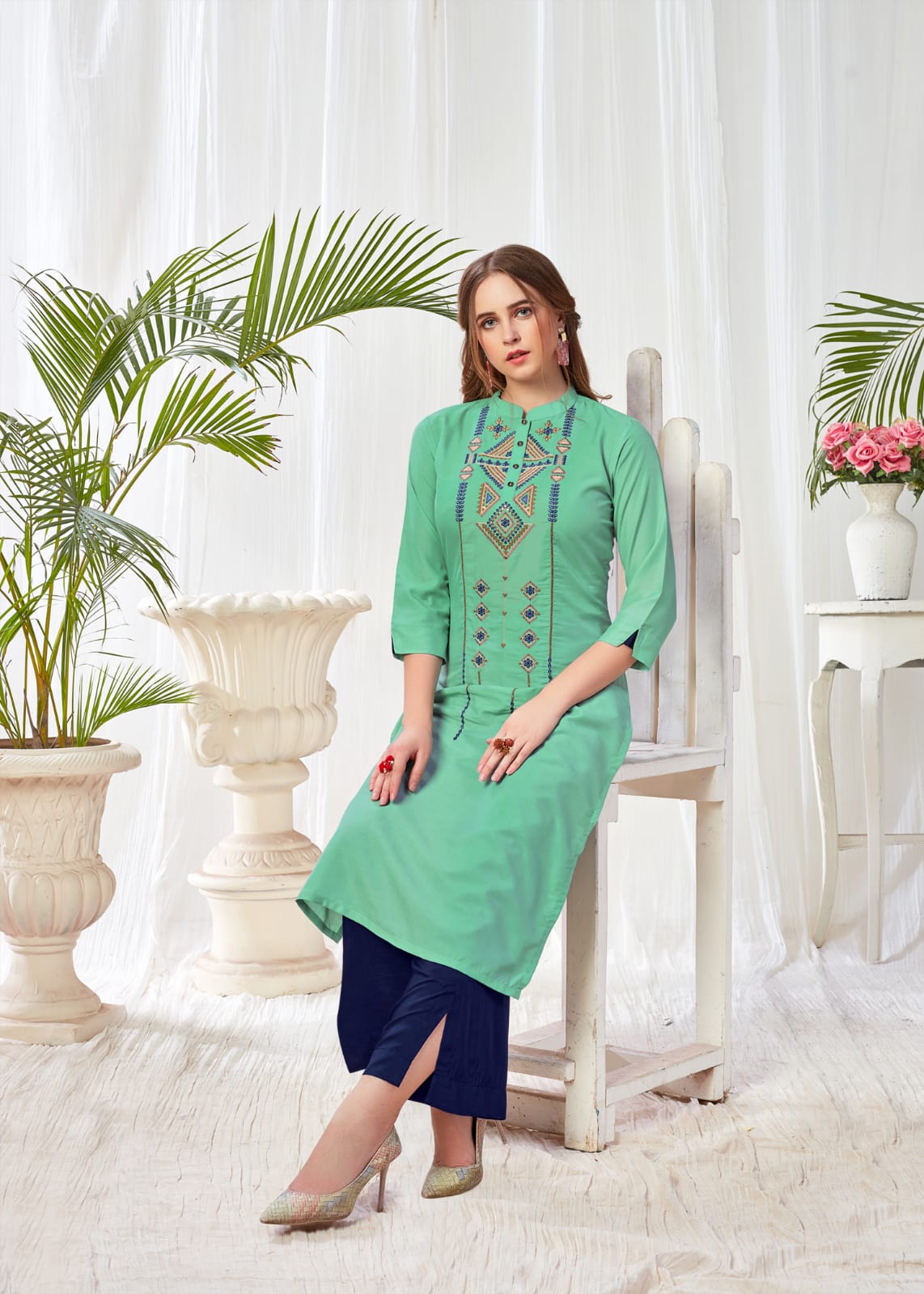 (SANKALP CREATION) HAS LAUNCHED KURTI WITH PANT PLAZO CATALOGUE NAME: BLUSH VOL-2 Fabric : MUSLIN WITH INNER WORK : DESIGNER EMBROIDERY Length : 46 Design : 5 Size : M-38, L-40, XL-42, XXL-44, 3XL-46 Rate : 699+ GST BOOK YOUR ORDER NOW |