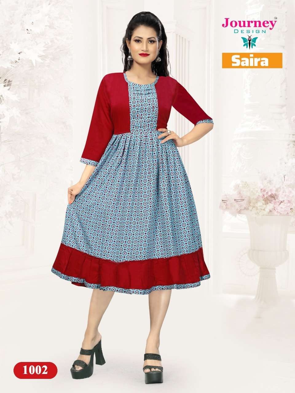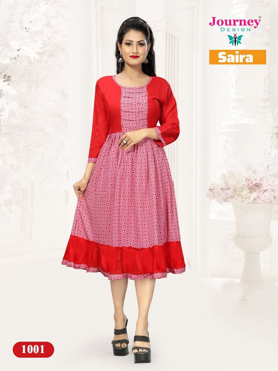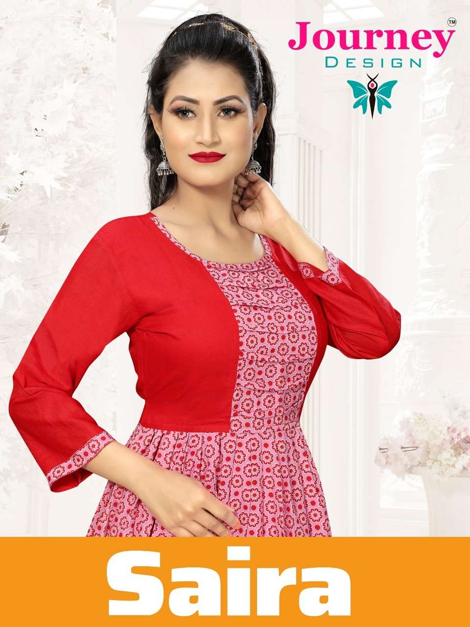 🦋 JOURNEY DESIGN - SURAT 🦋 INTRODUCE 🔁🔁🔁🔁🔁🔁🔁🔁🔁🔁🔁 S A I R A 🎯FABRICE :- 🎯TOP :- HAVEY RAYON 🎯SIZE :- M , L , XL , XXL 🎯RATE. :- 399/- 🎯GST :- 5% |