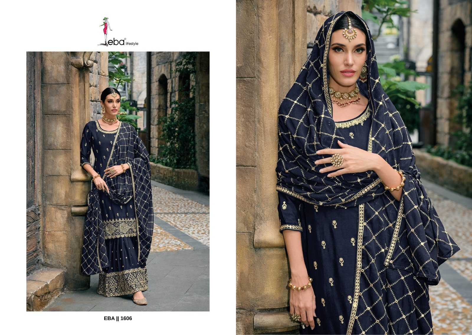 eba lifestyle Jugani Top - hevey Chinon with embroidery work Plazo - hevey Chinon with embroidery work front back Duppta - hevey Chinon with embroidery RATE - 1799/- |