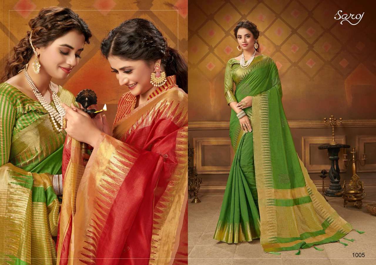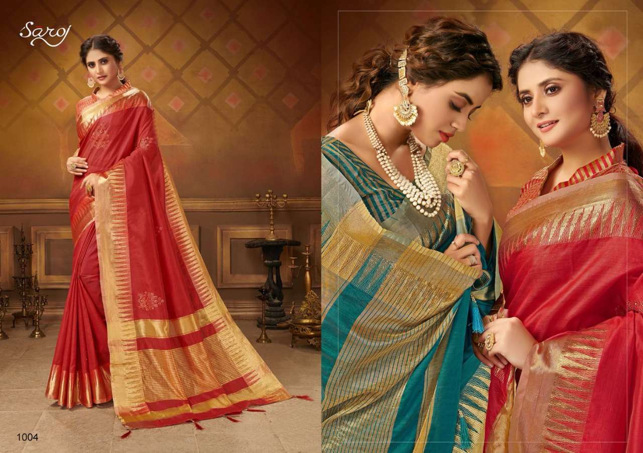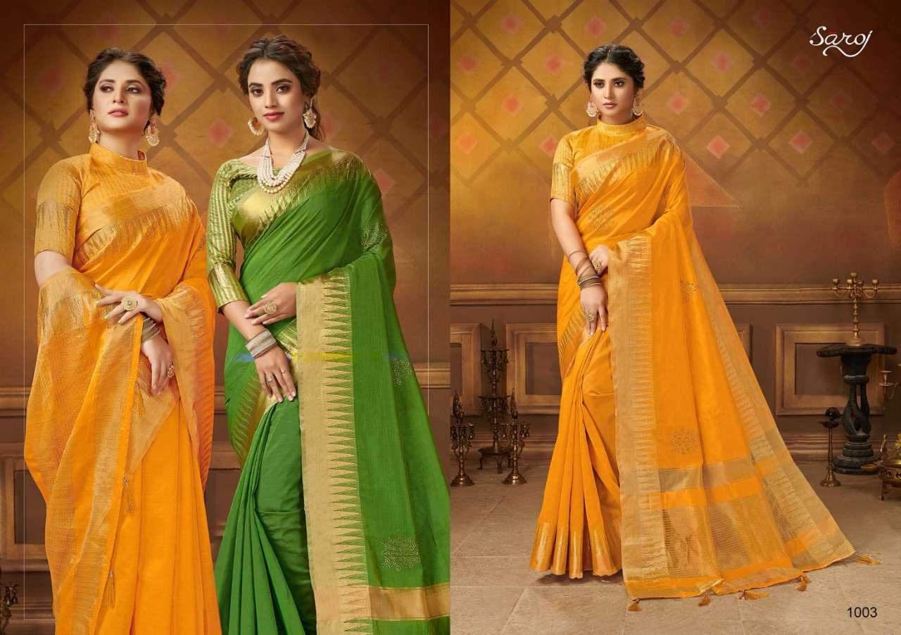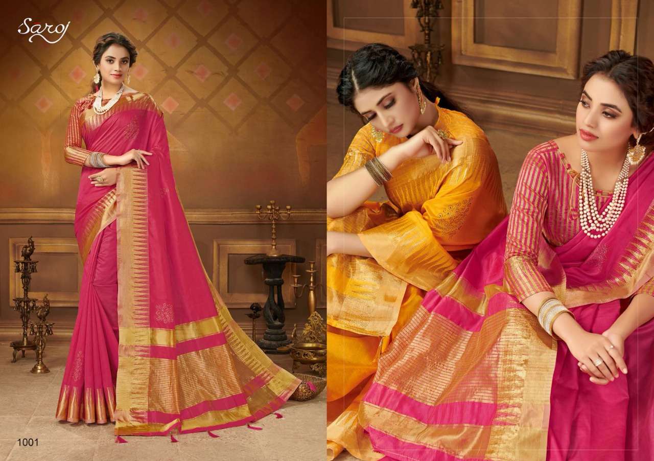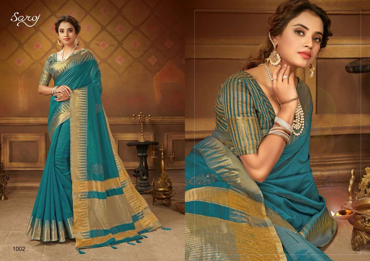 Brand - Saroj . Fabric: Cotton Silk with Jari Pallu and swarovski Butta. |