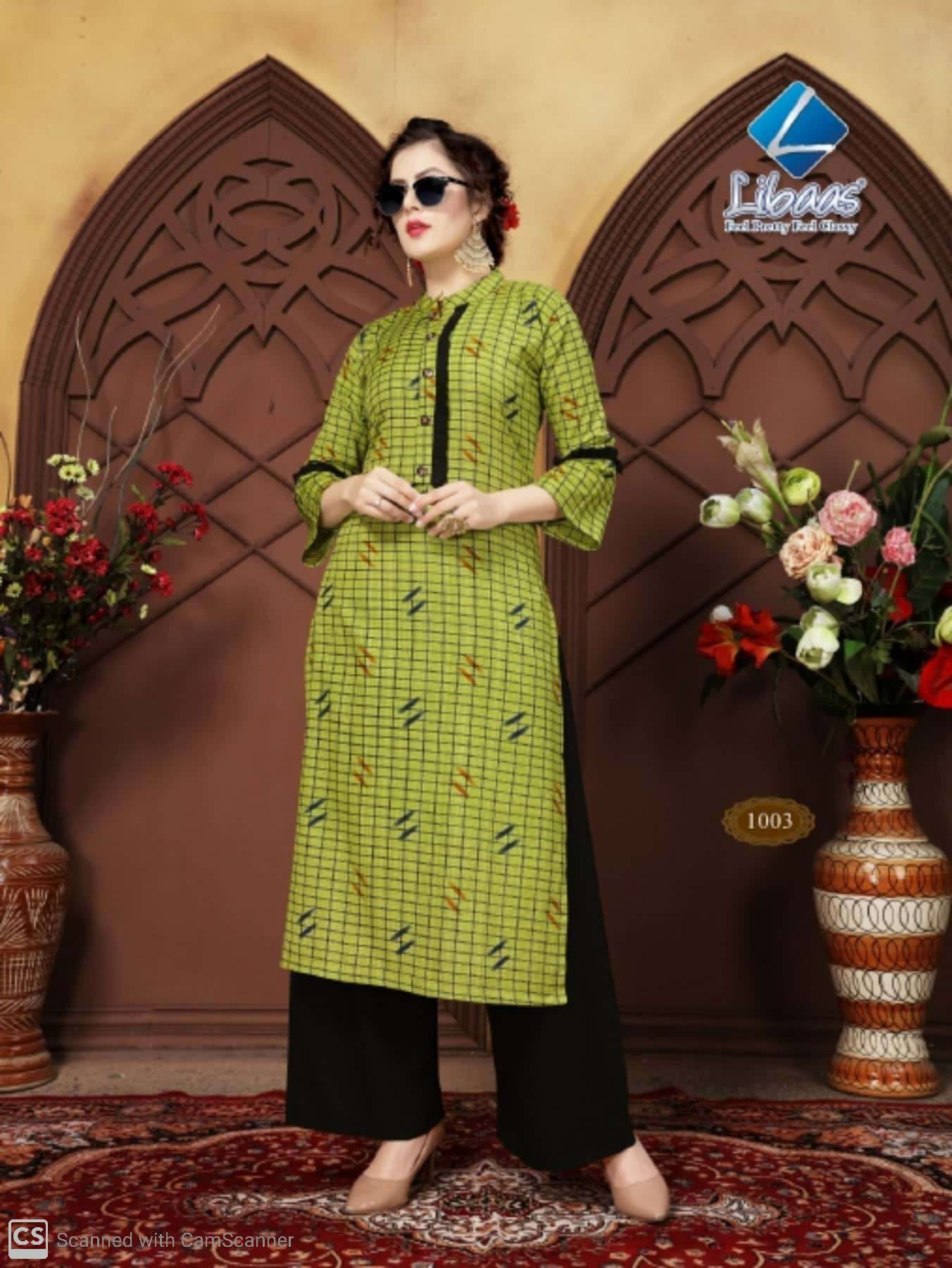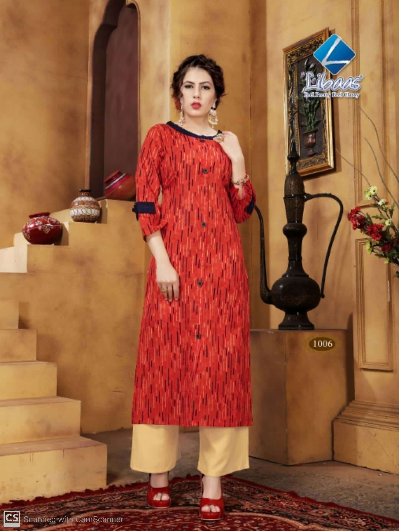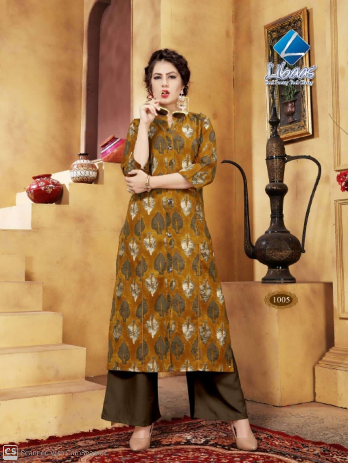 Surat LIBAAS KURTI 📚Catalogue : JULIE AUNTHETIC DISPLAY OF STATUS Fabrics : Cotton flex print long Sleeves type : 3/4th No.of designs : 6 Available Sizes : L40, XL42,XXL44 Without Plaazo Rate:-395 + GST With Plaazo Rate:-595 + GST Please send your orders. and feel free to talk.... made in india a LIBAAS enterprise |
