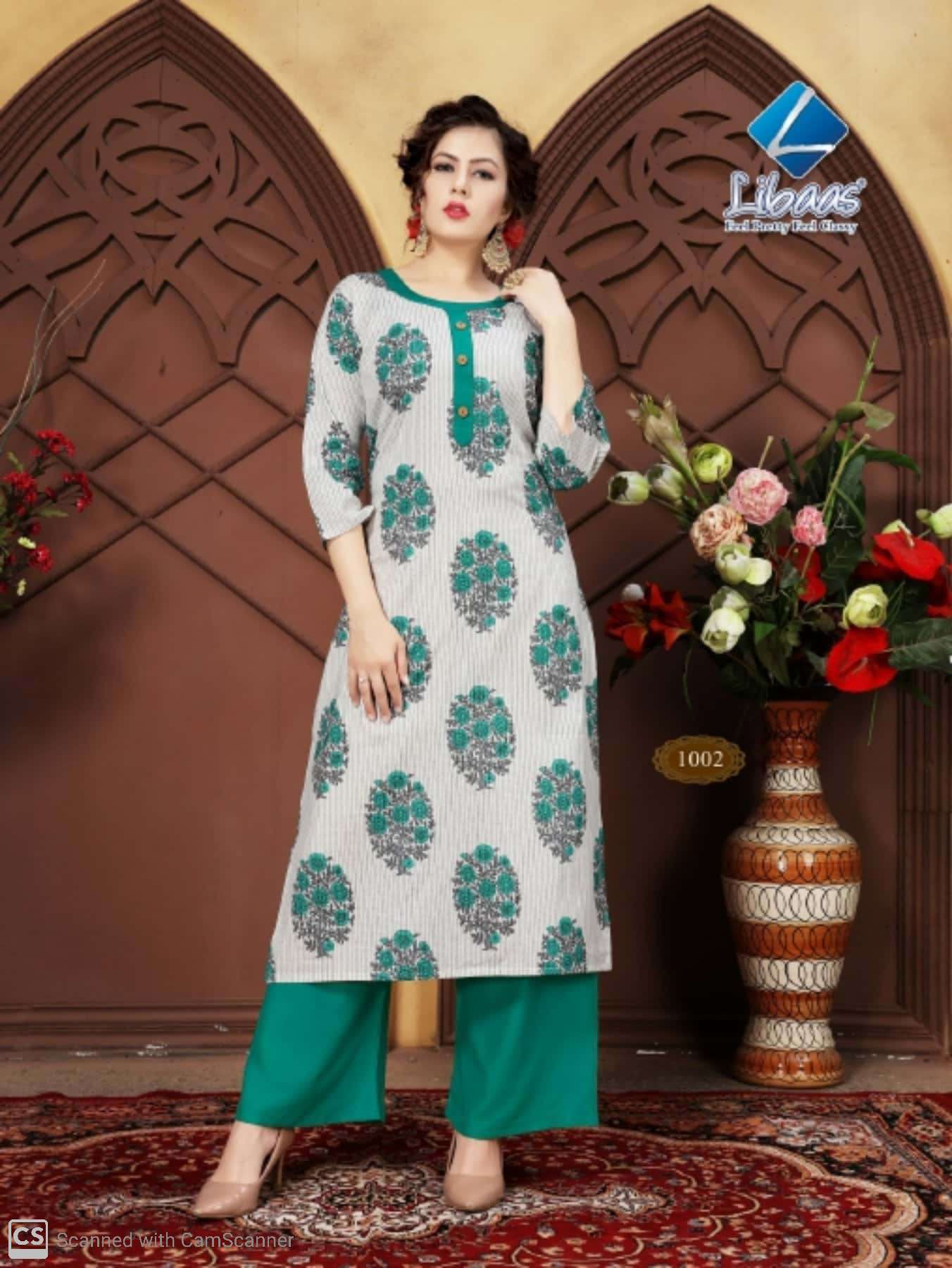 Julie By Libaas Cotton Flex Print Long Kurti With Plazzo Wholesale Price