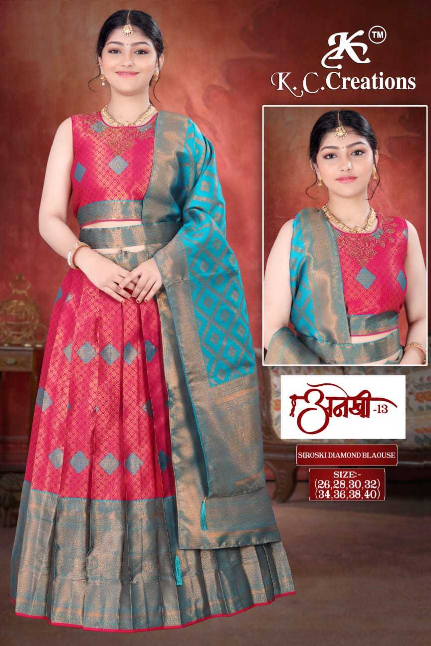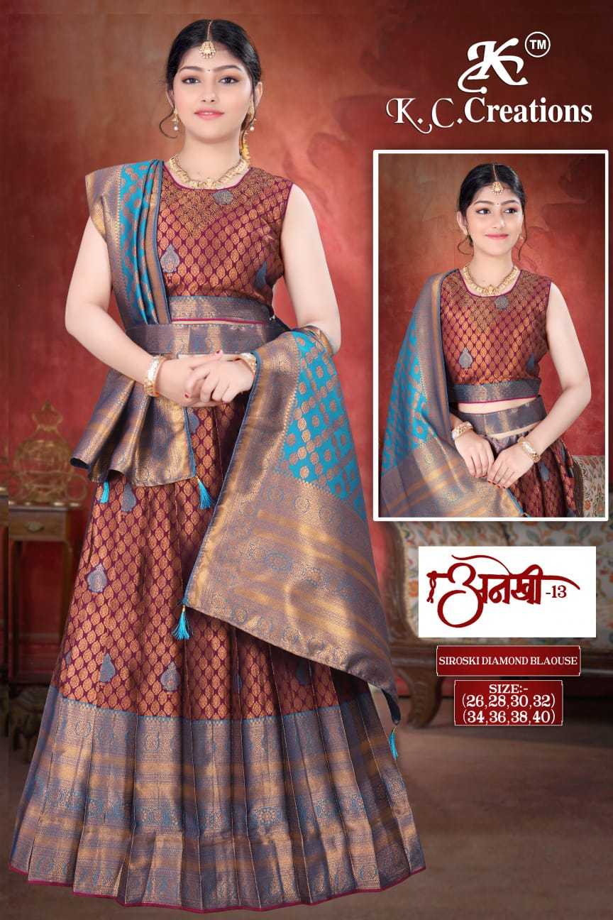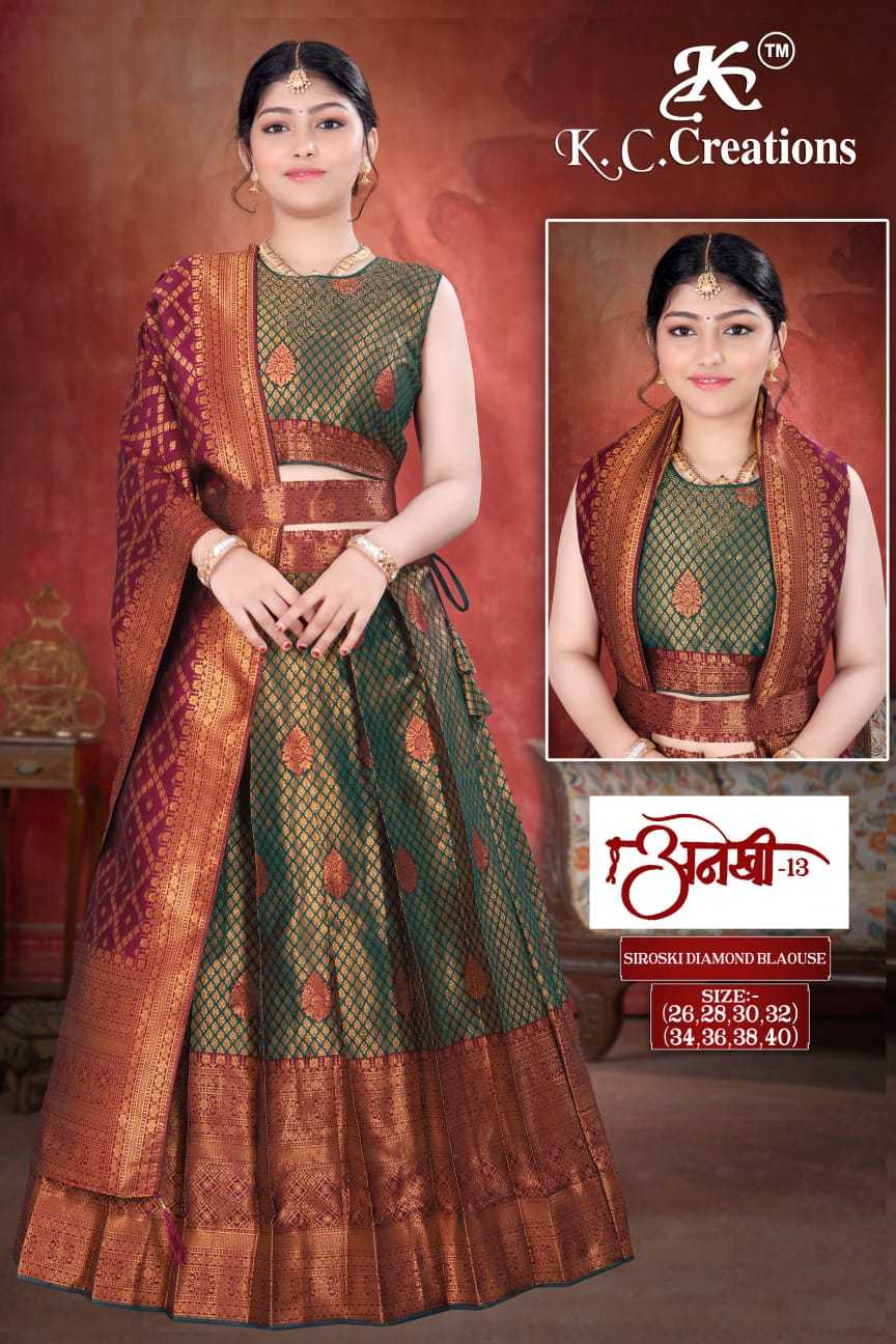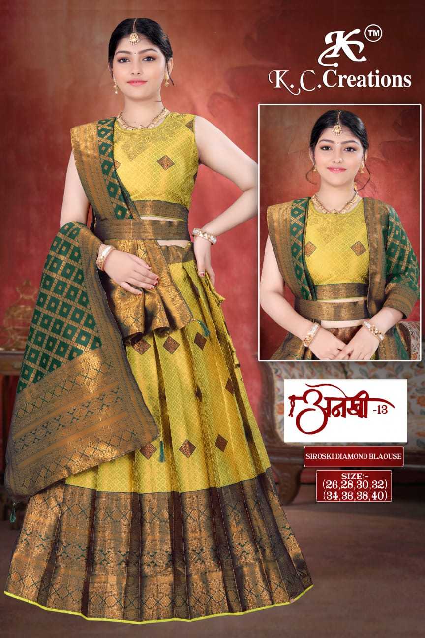 k c creation anekhi vol 13 ethnic style pattu full stitch kids lehenga