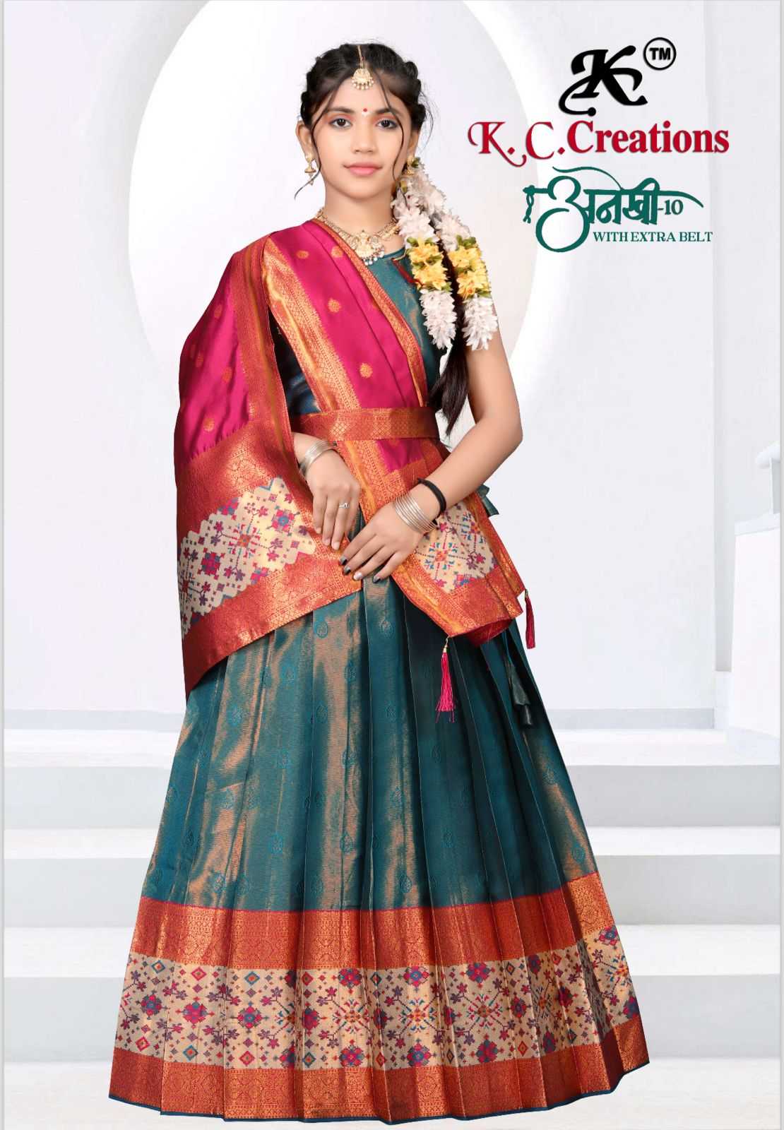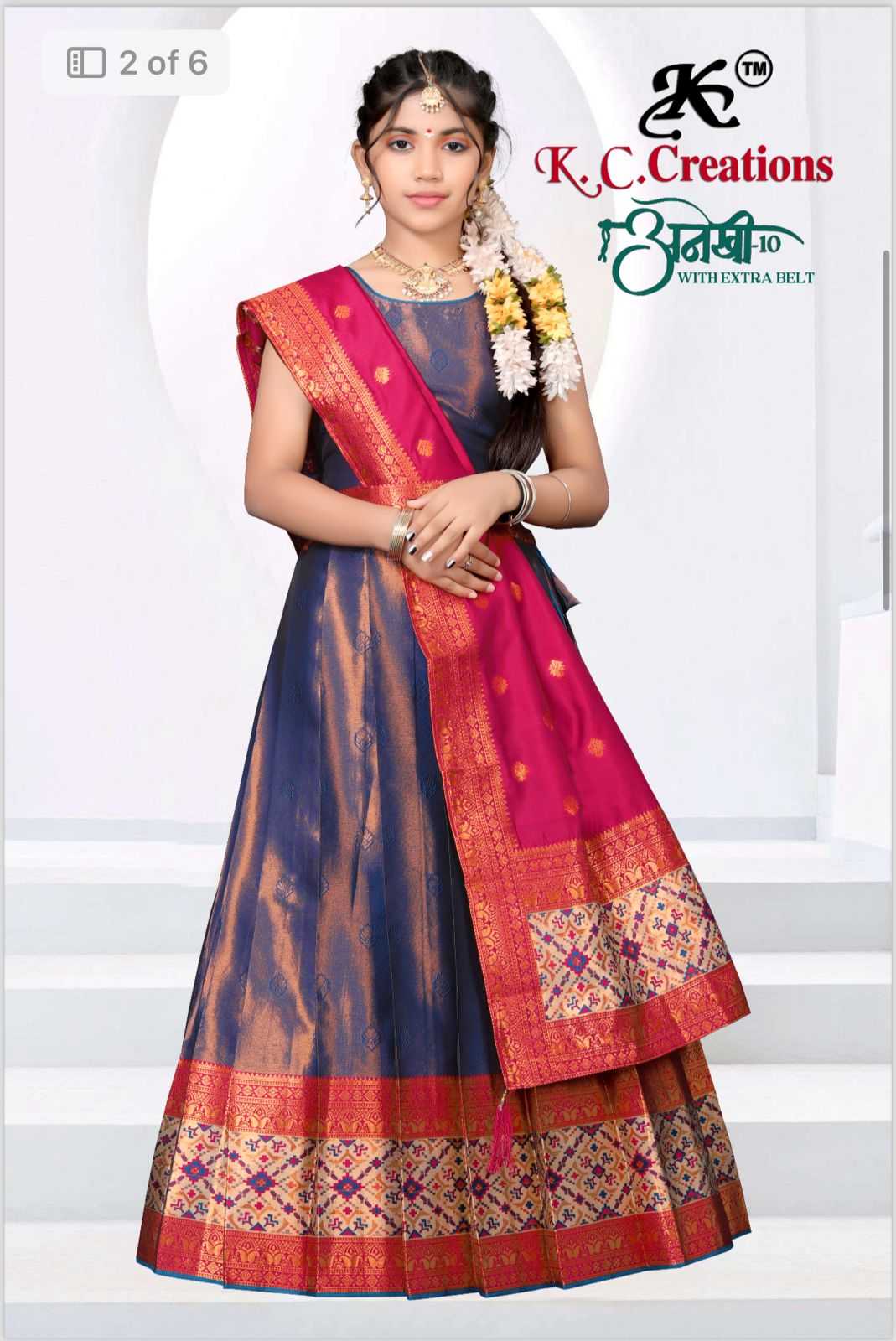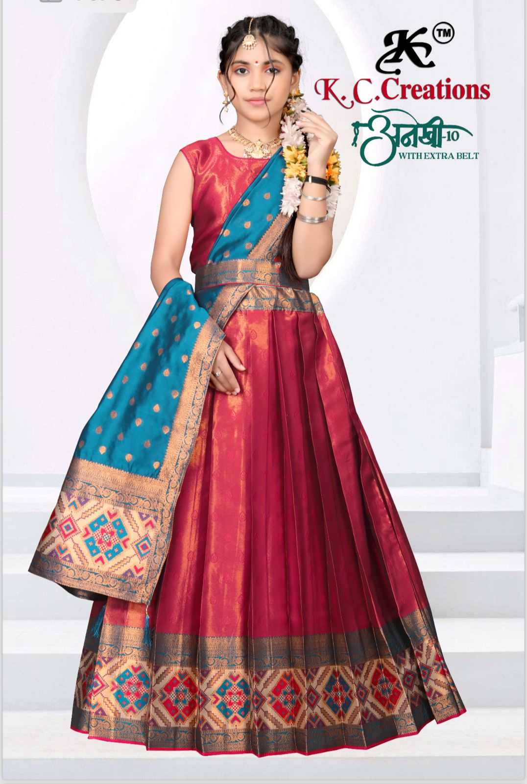 k c creation presents anekhi 10 hit designer pattu kids full stitch lehenga