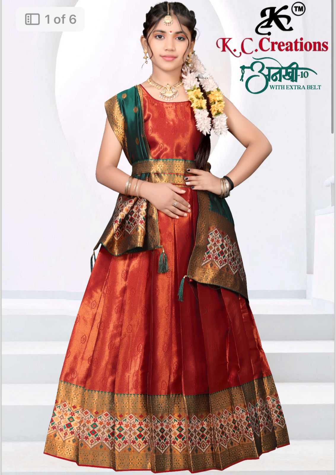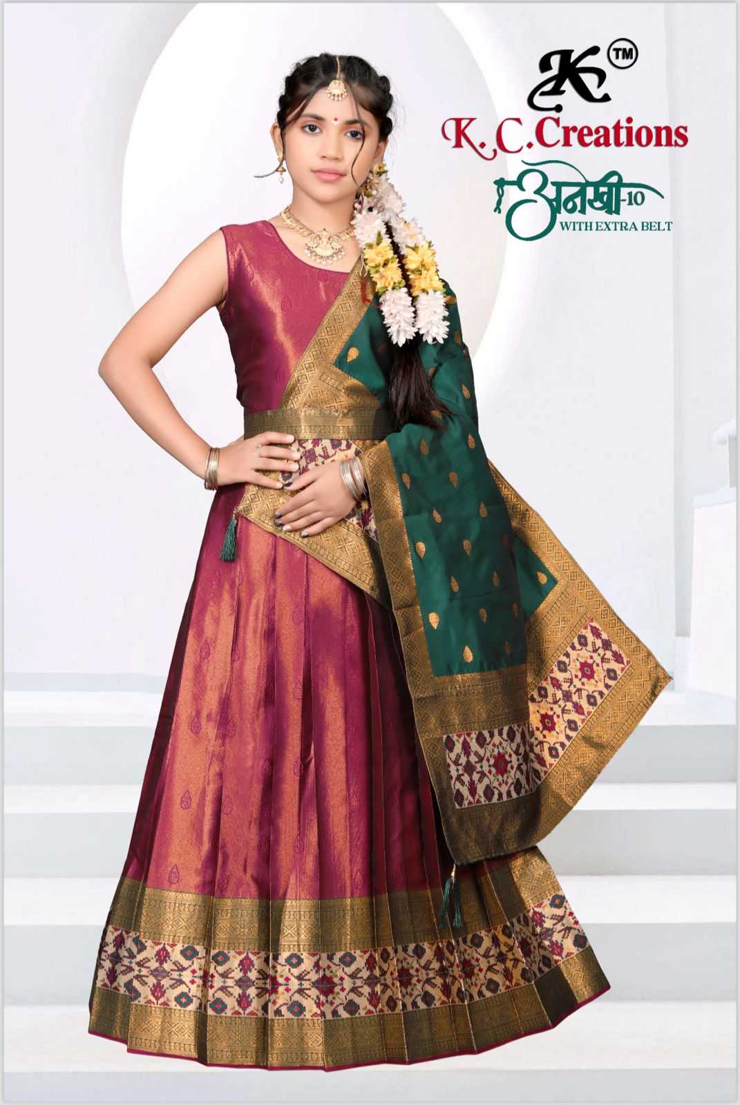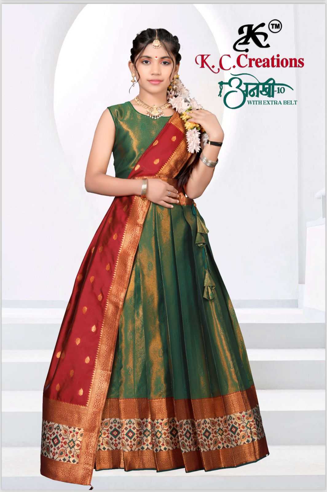 k c creation presents anekhi 10 hit designer pattu kids full stitch lehenga