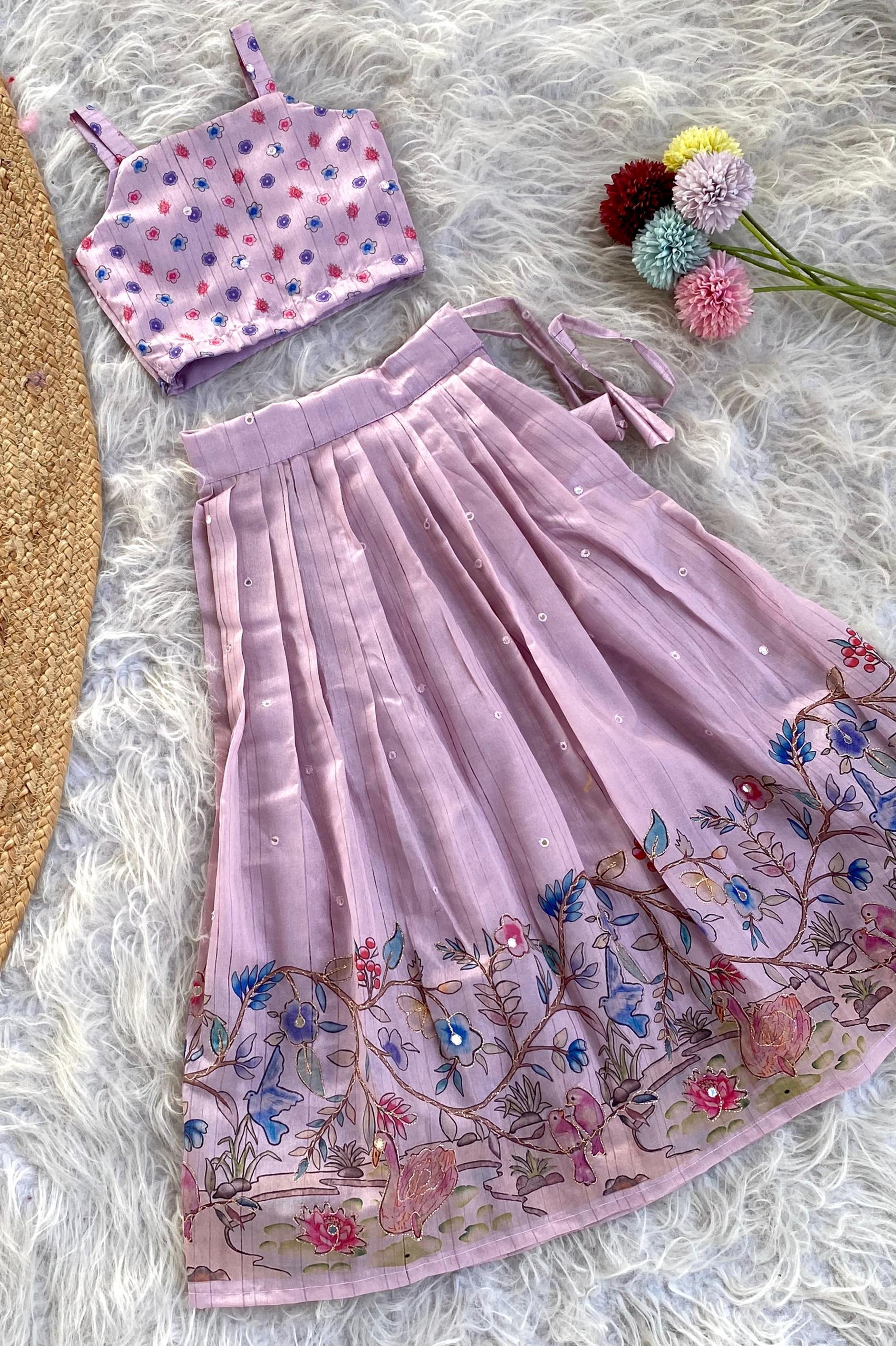 🌸New catalog🌸 DS NO K206869 Elegant girls skirt and top set featuring floral motifs and delicate embroidery highlights on the top, with intricate handwork on the daaman for a graceful finish💕 Available in two beautiful colors ✨ Fabric :- Tussar silk